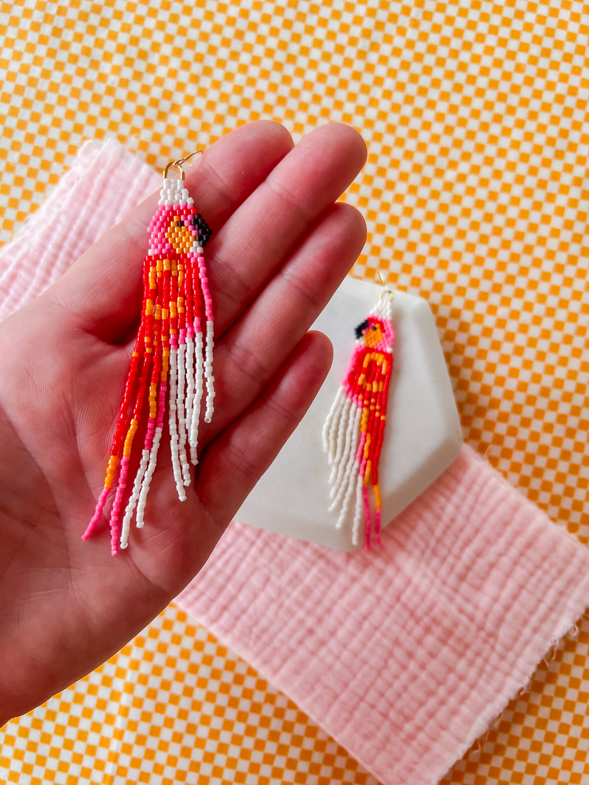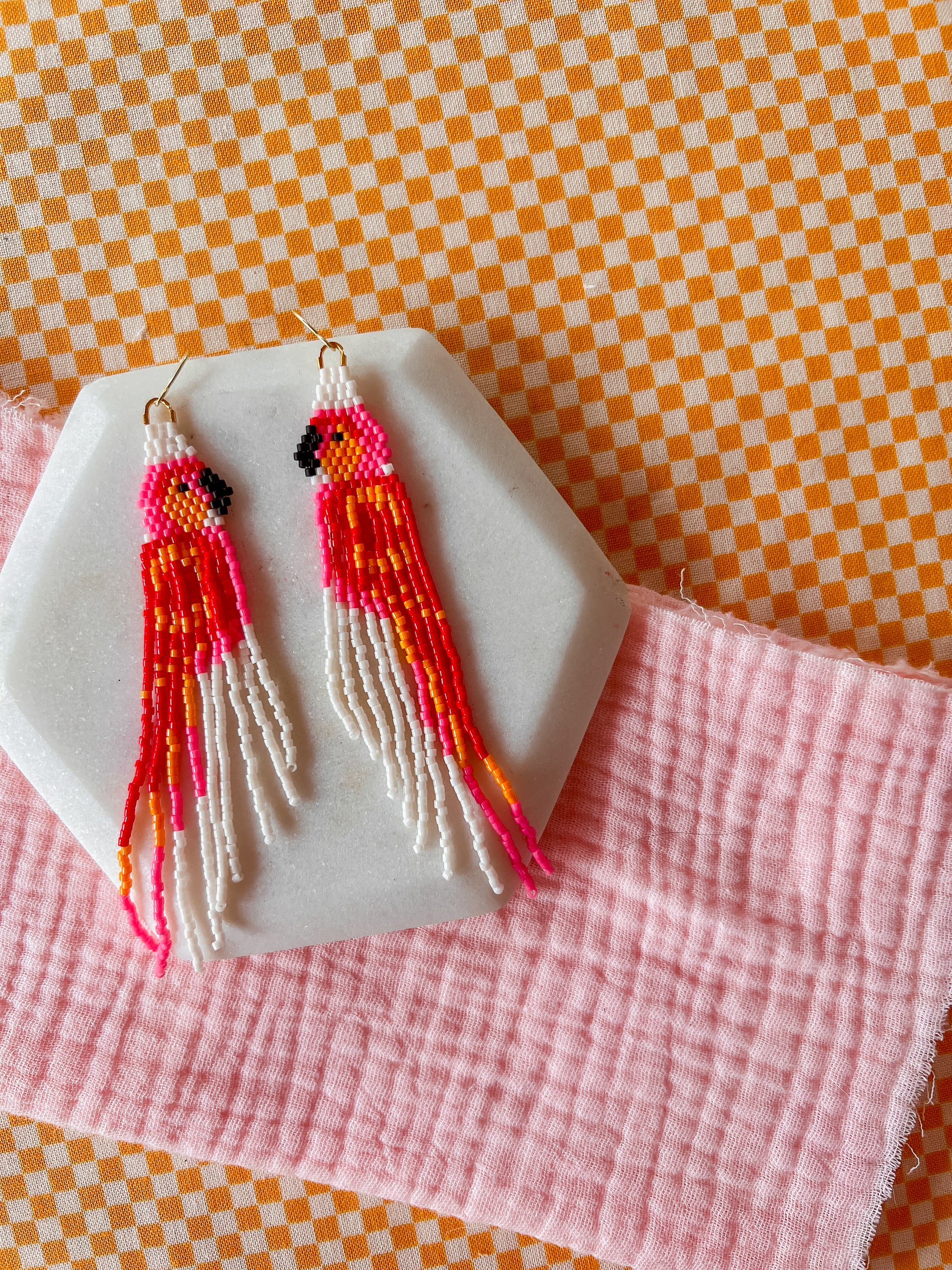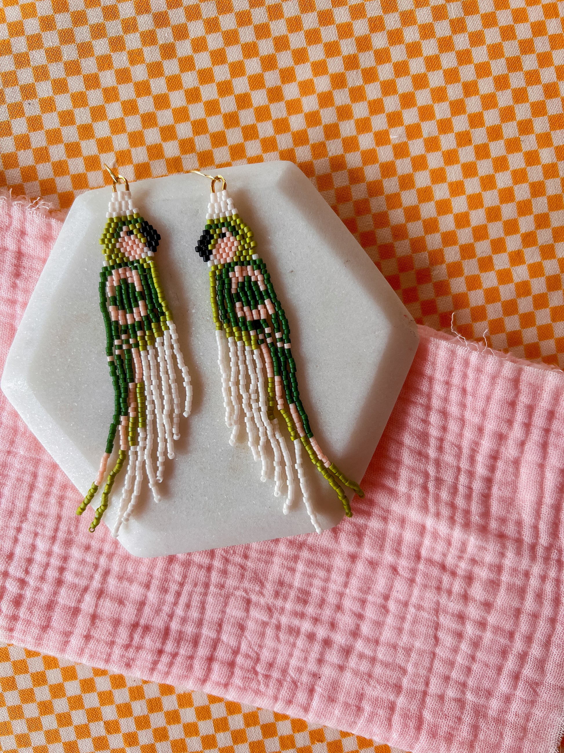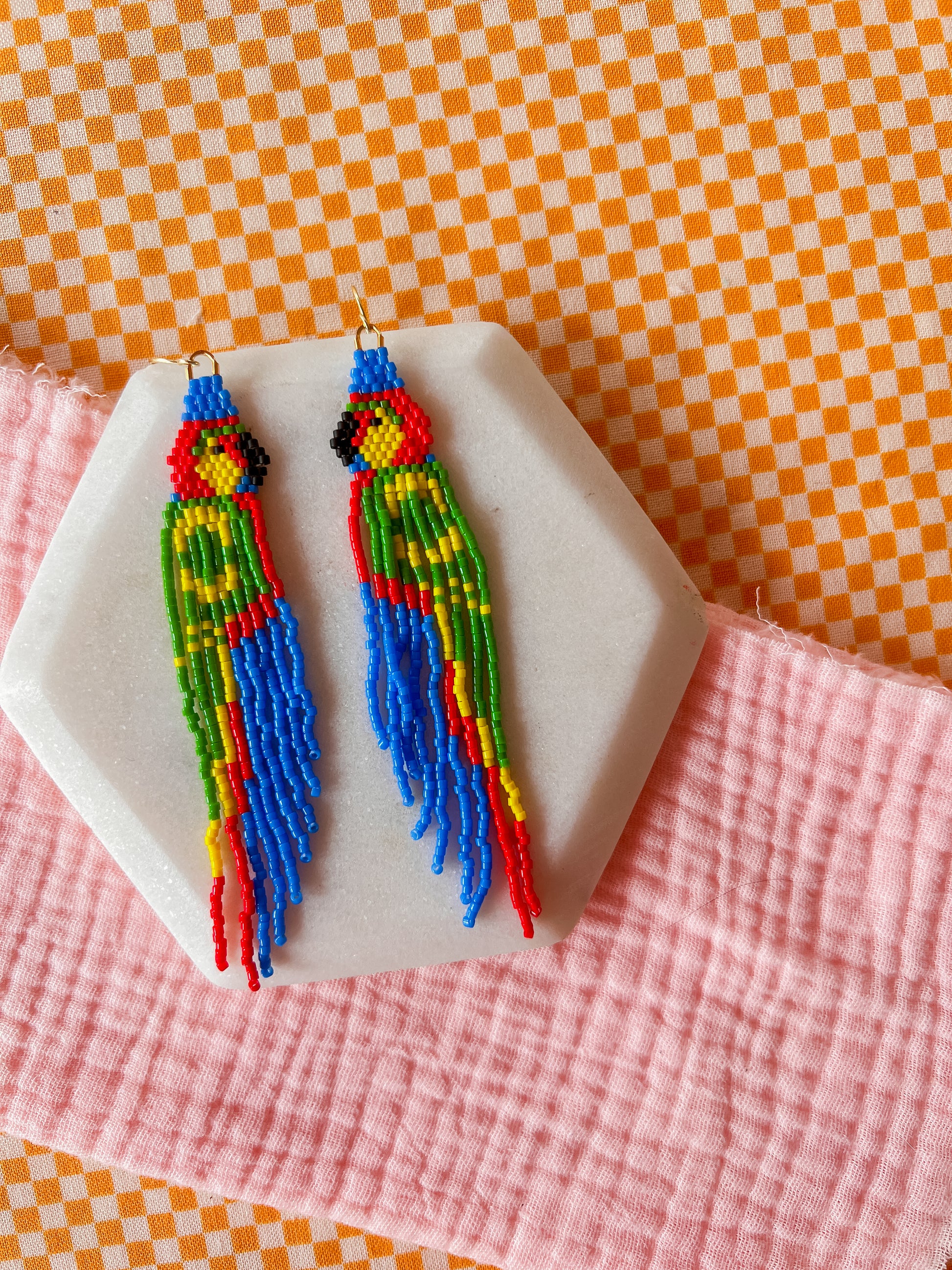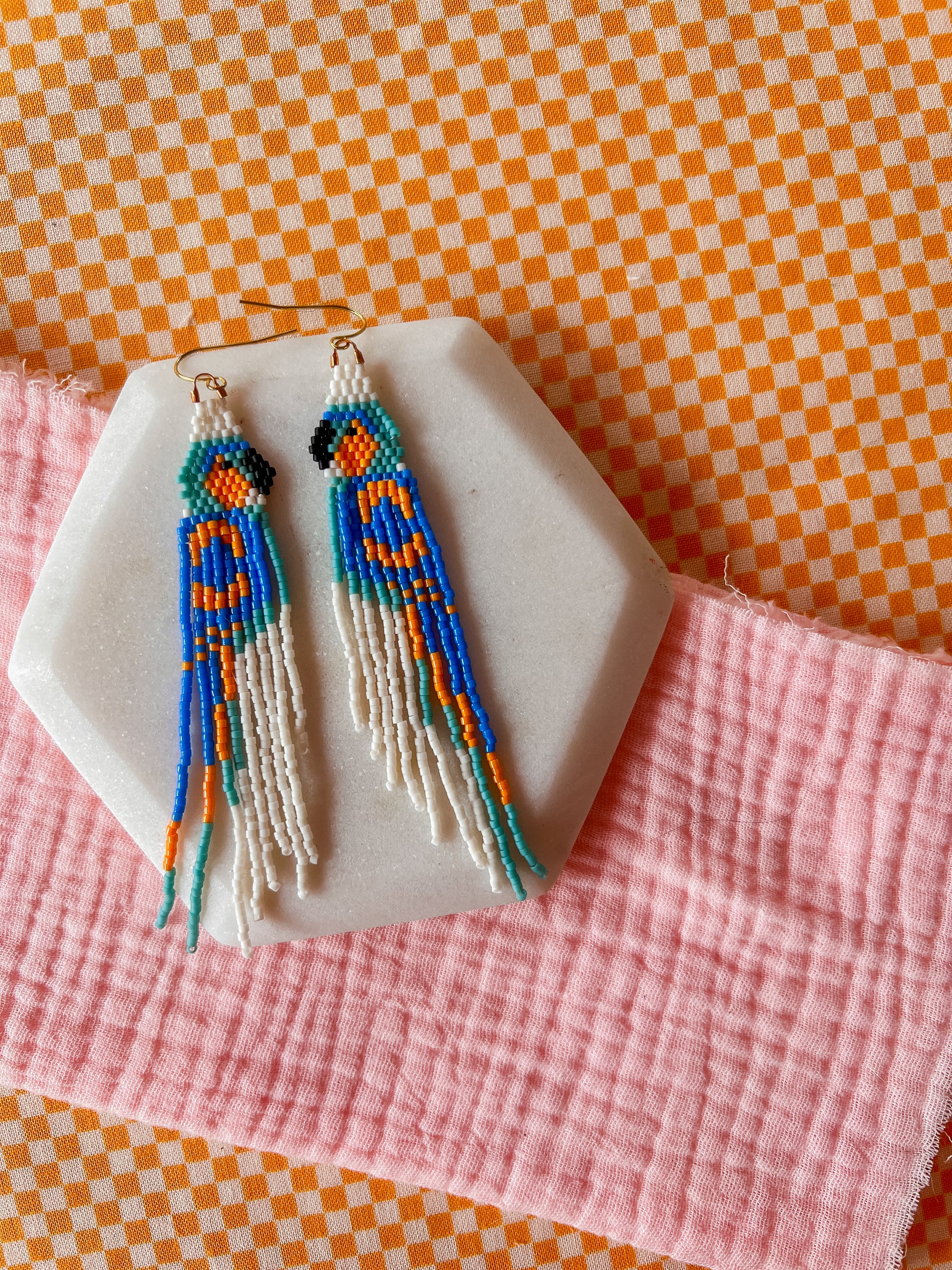 Our earrings are hand woven, hand beaded and intricately designed. Each item will have small variations and possible imperfections. These earrings are woven with small glass seed beads and strong nylon thread to last a lifetime.