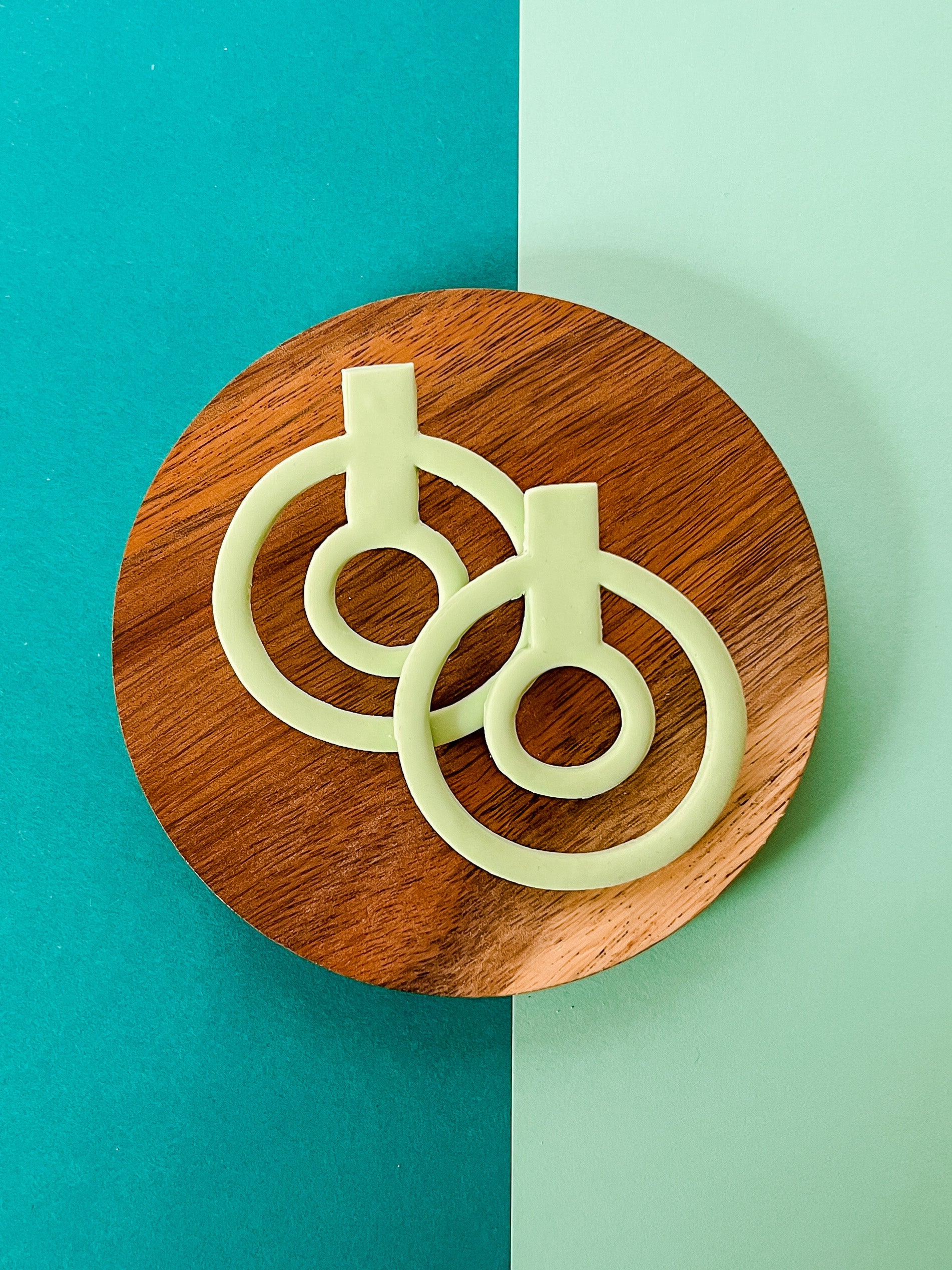 Our earrings are handmade in Greenville. South Carolina. Each item will have small variations and possible imperfections. Clay earrings are made start to finish from a block of clay. Each piece is unique. Each item is lovingly rolled out, cut, baked, sanded and assembled by hand from polymer clay.