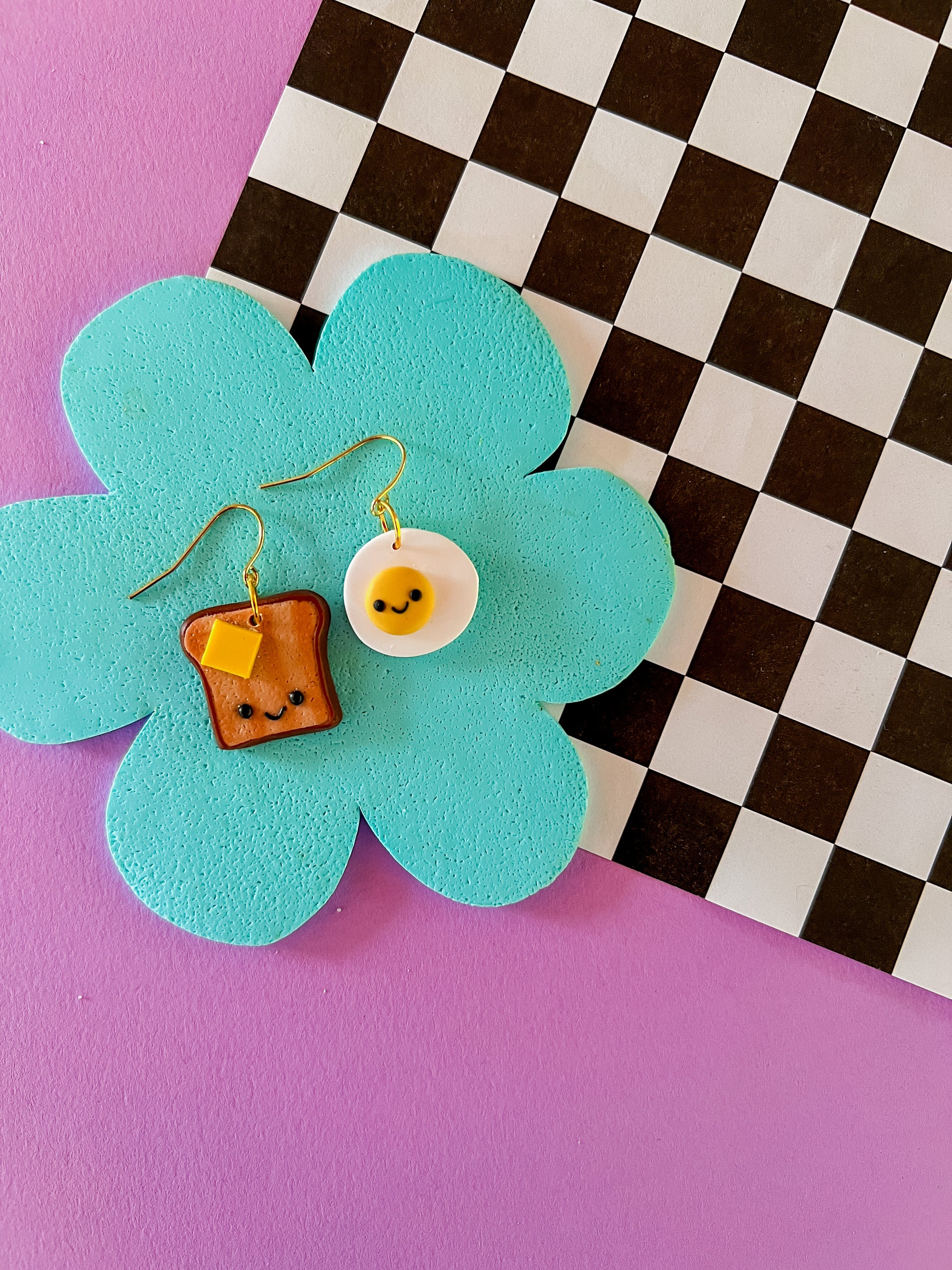 Brunch Earrings | Gold Plated, Gold Fill or Clip On option | Polymer Clay | 1” length