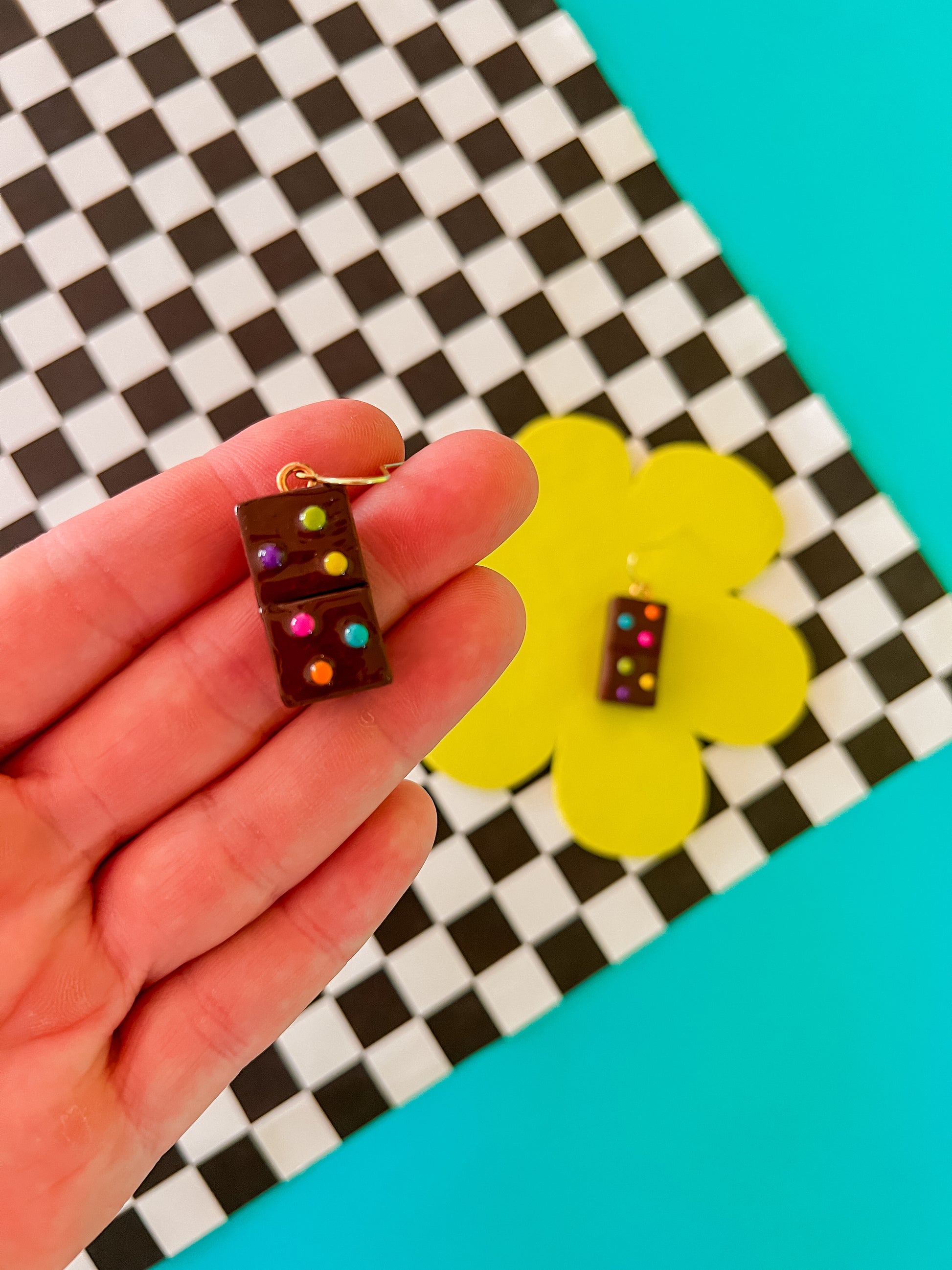 Cassie’s Cosmic Brownie Earrings | Gold Plated, Gold Fill or Clip On option | Polymer Clay | 1” length