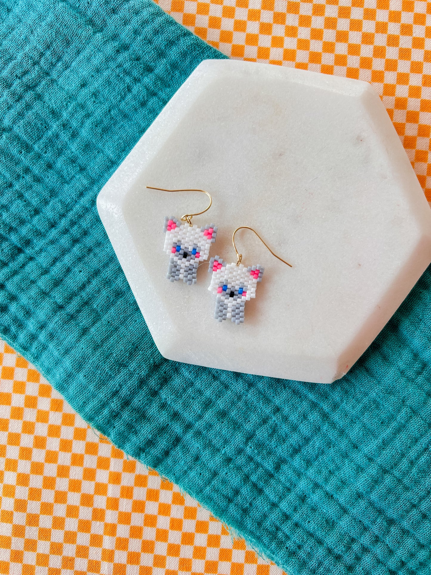Our earrings are hand woven, hand beaded and intricately designed. Each item will have small variations and possible imperfections. These earrings are woven with small miyuki seed beads and strong nylon thread to last a lifetime.