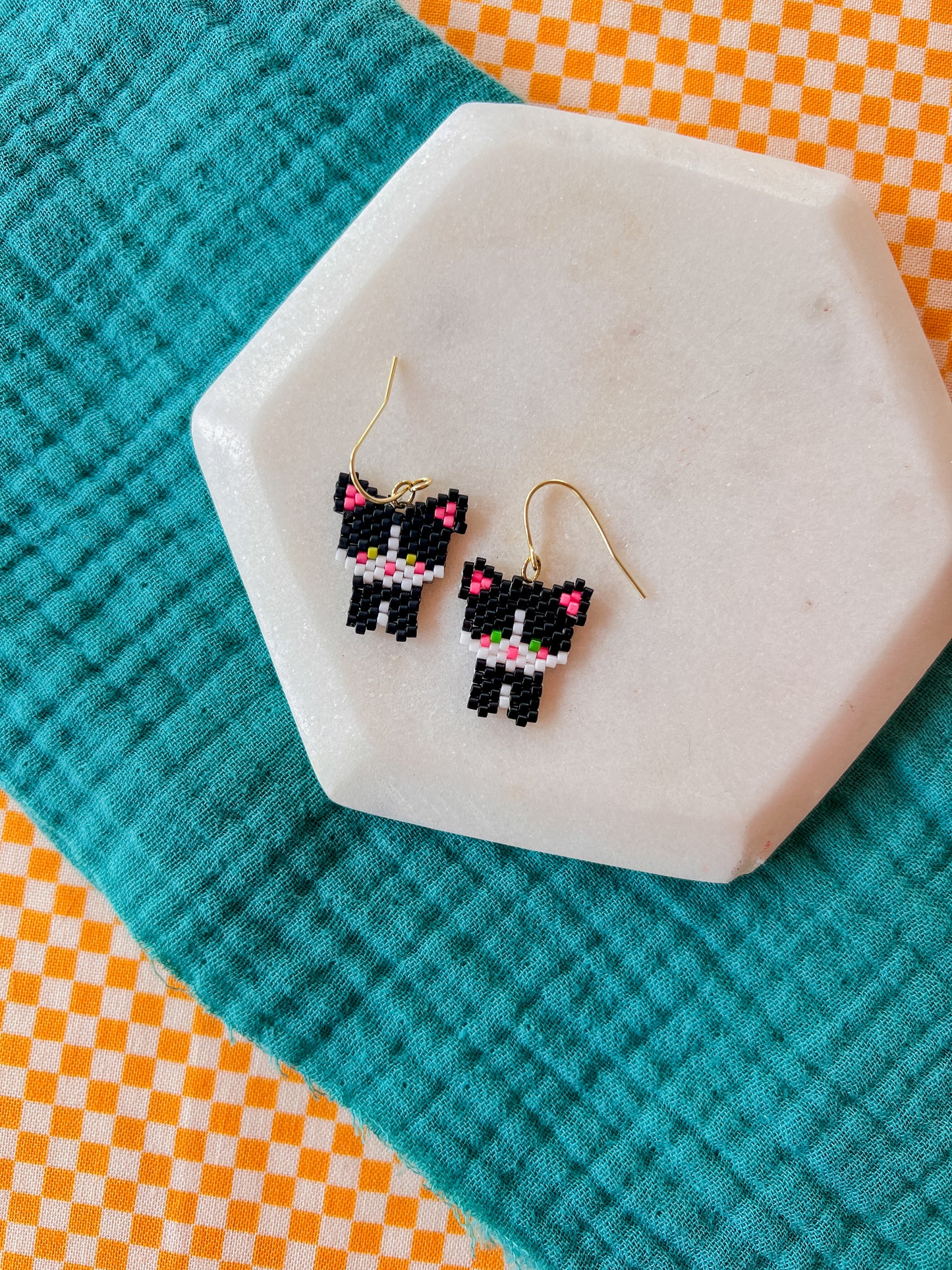 Cat Fight Earrings | Gold Plated Ear Wires | 1” in Length