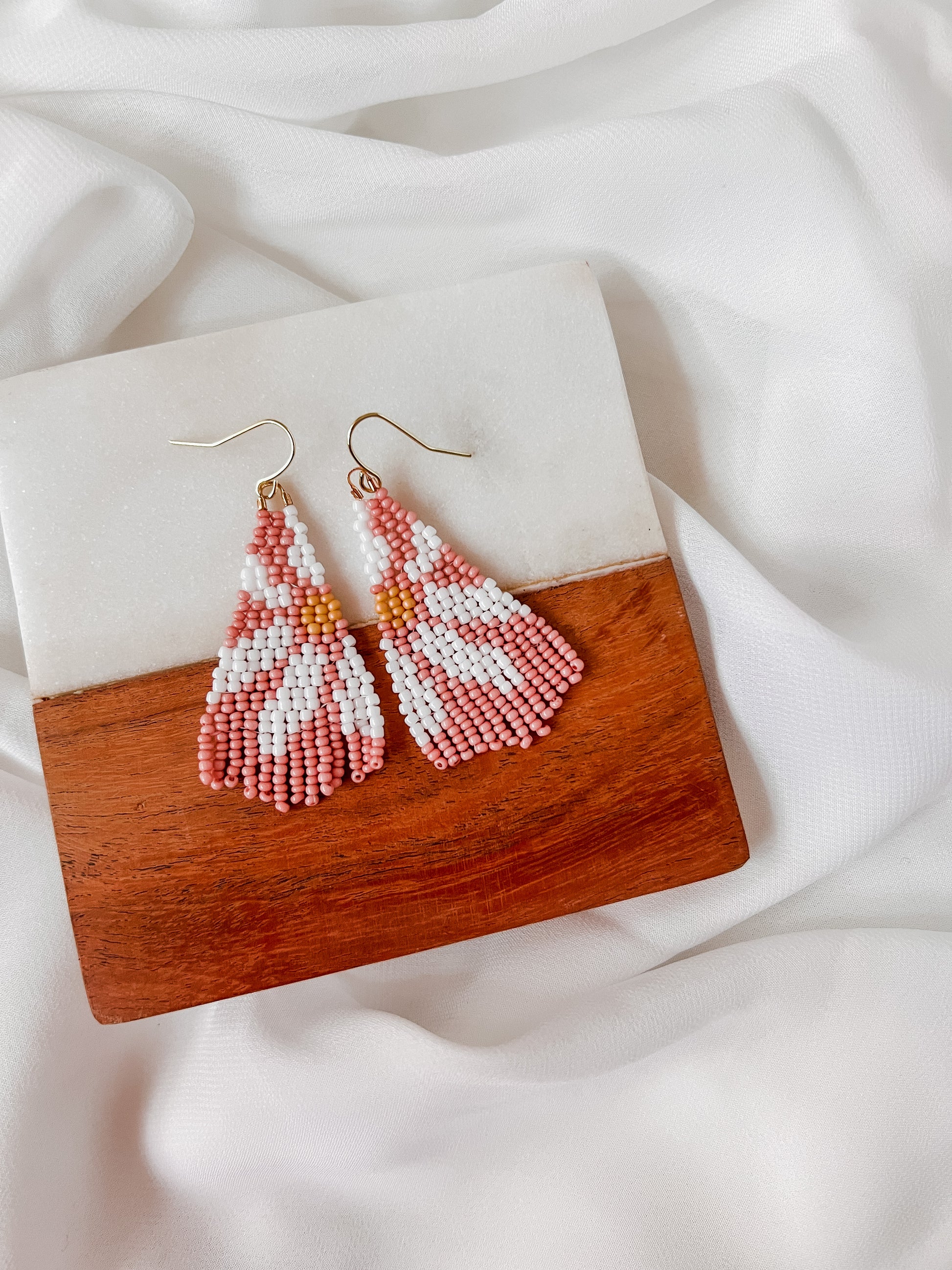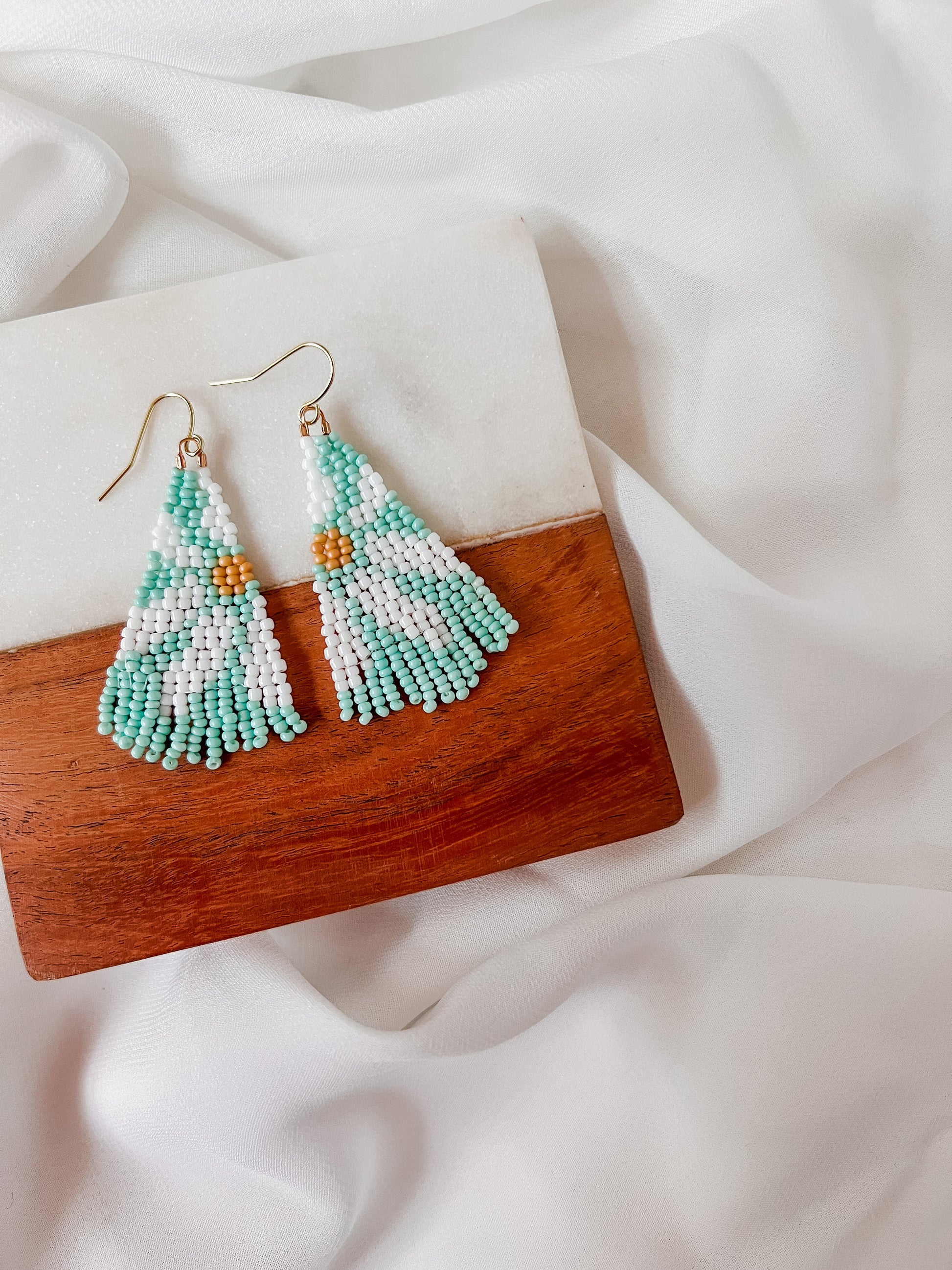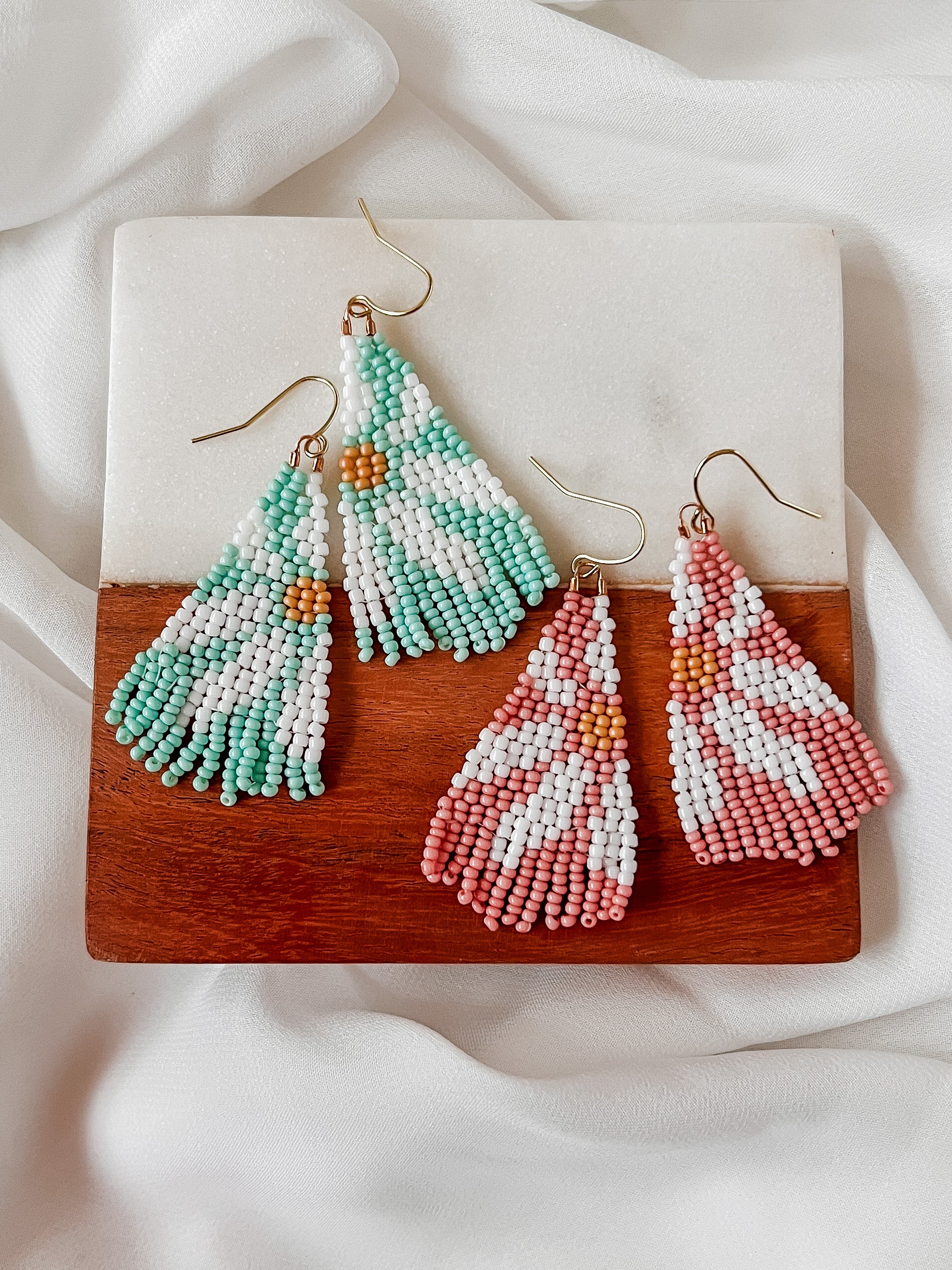 Our earrings are hand woven, hand beaded and intricately designed. Each item will have small variations and possible imperfections. These earrings are woven with small glass seed beads and strong nylon thread to last a lifetime.