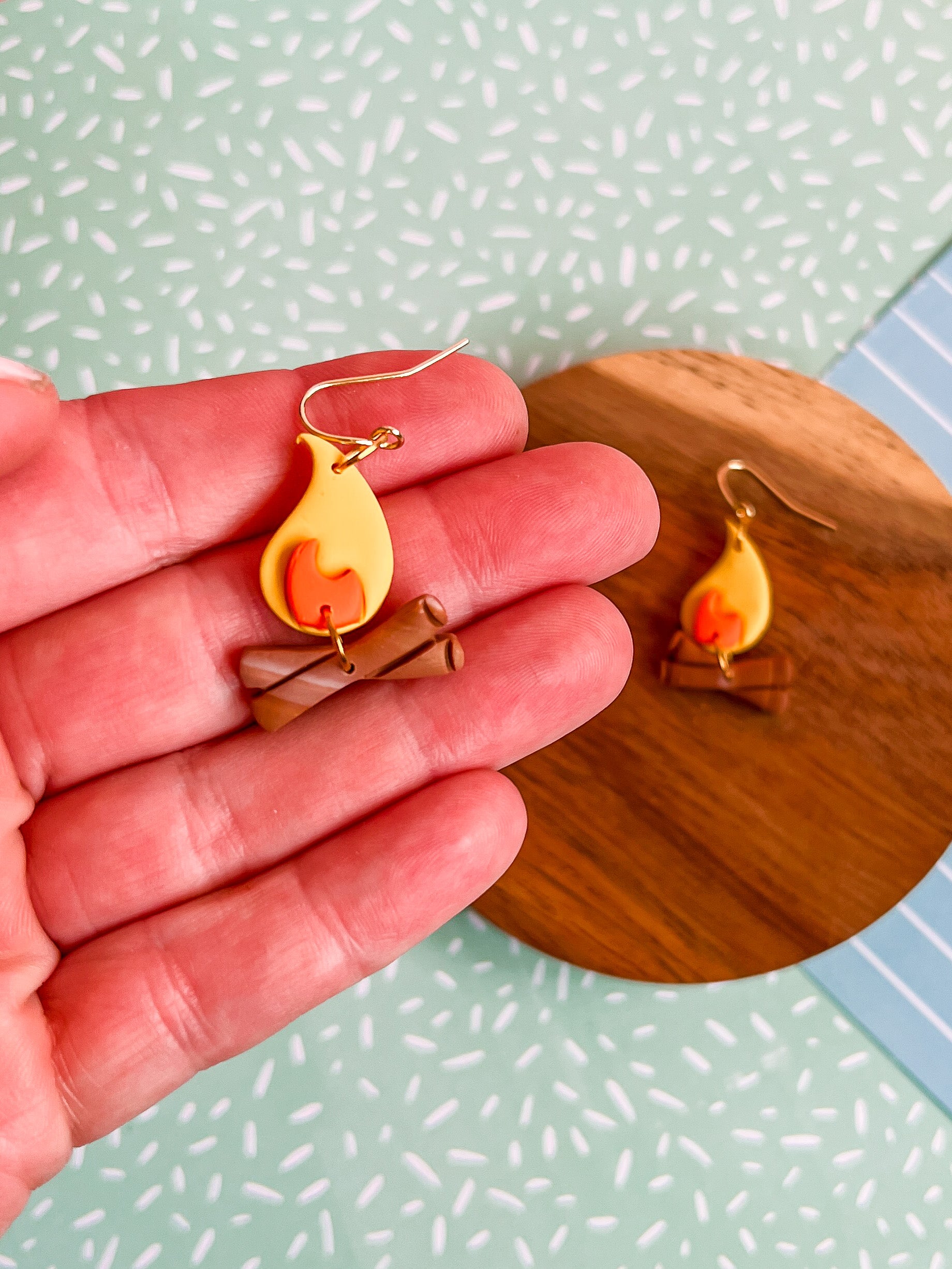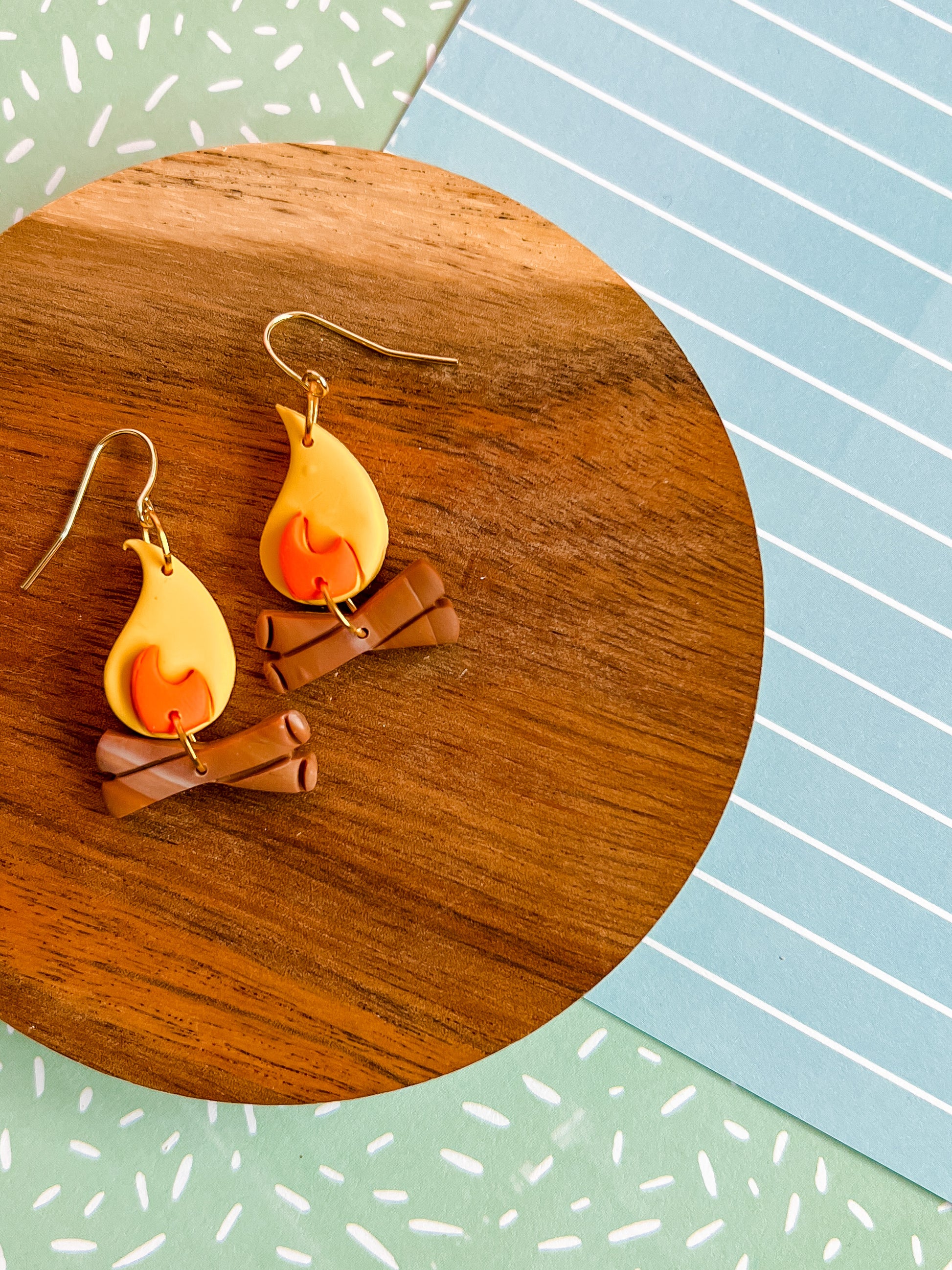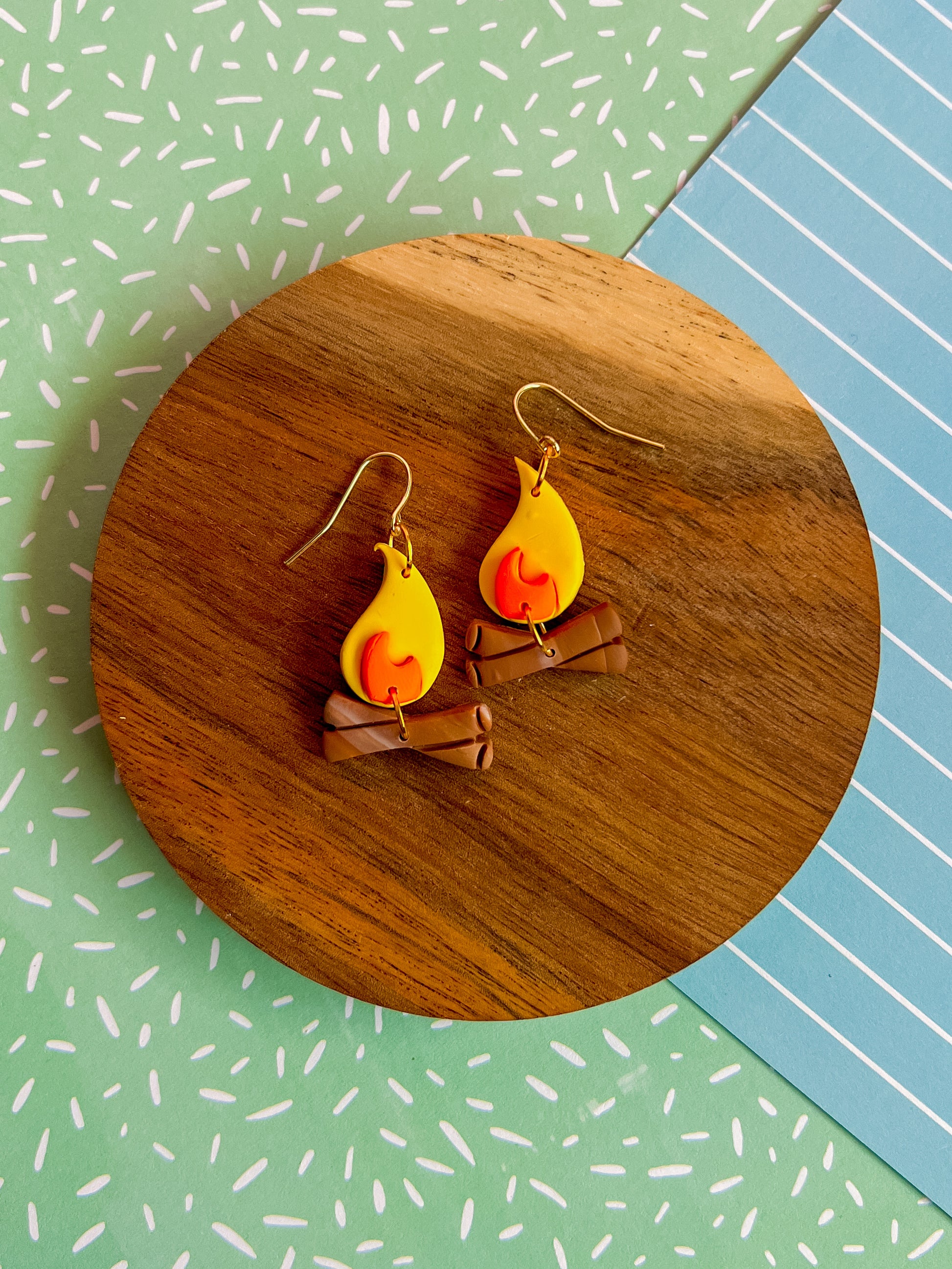 Campfire Clay Earrings | Gold Plated Hook, Gold Fill, or Clip on Option | 1”length