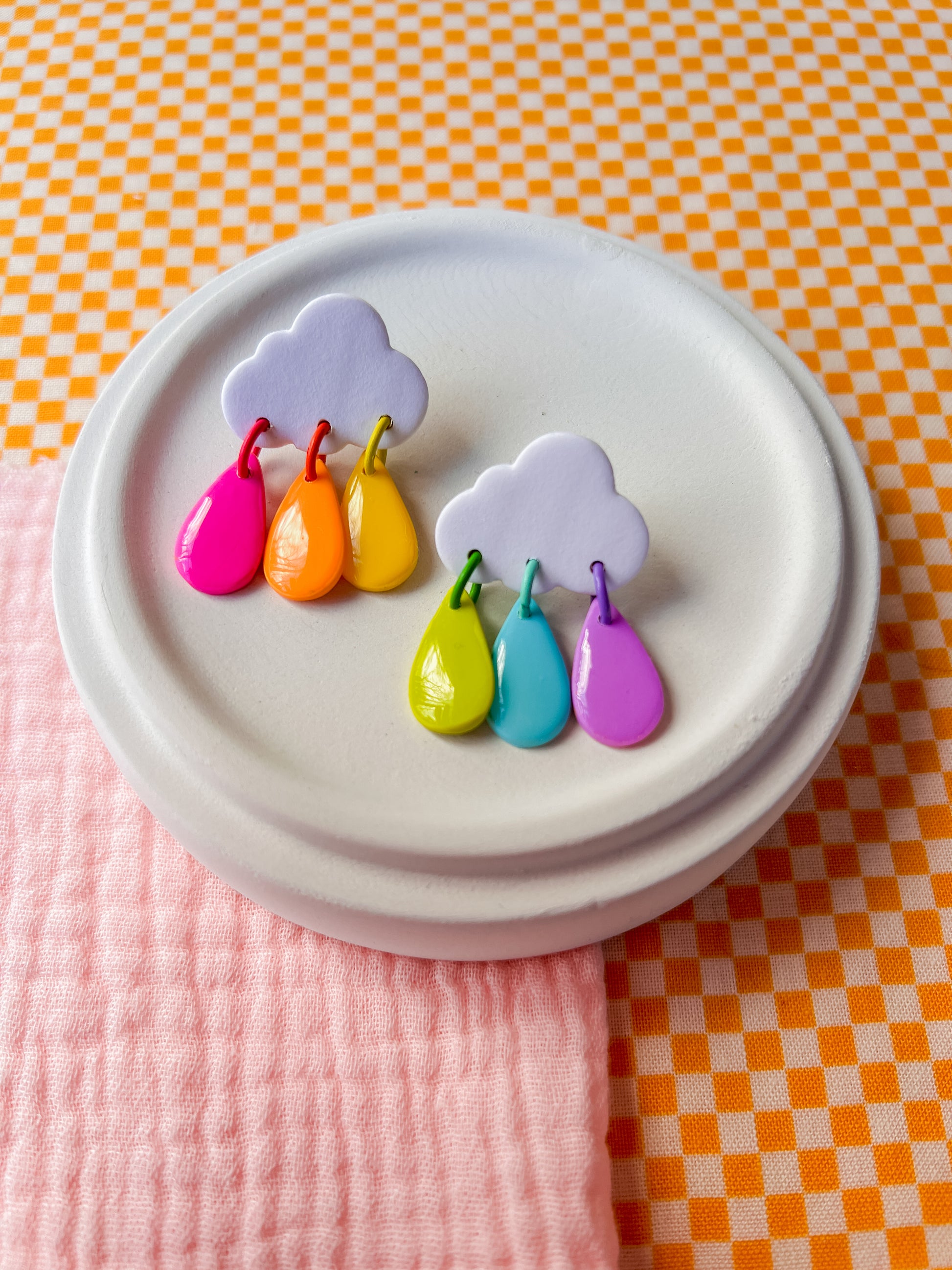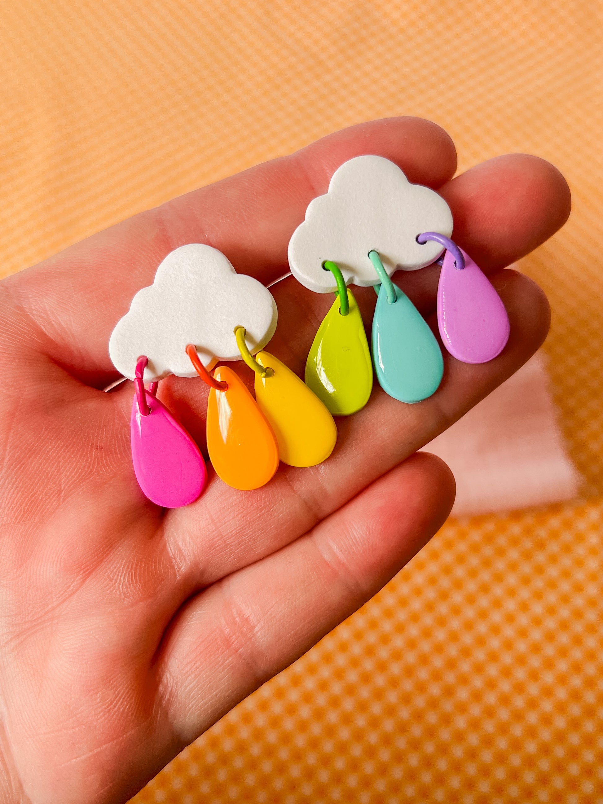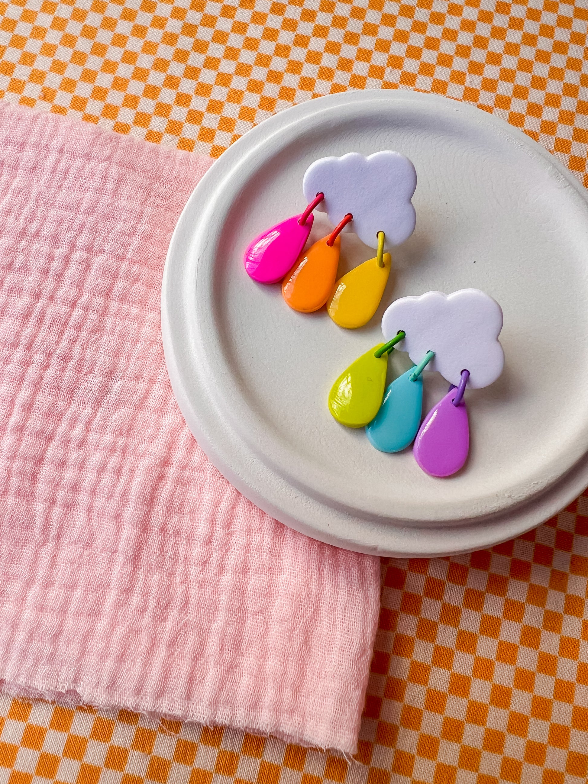 Our earrings are handmade in Greenville. South Carolina. Each item will have small variations and possible imperfections. Clay earrings are made start to finish from a block of clay. Each piece is unique. Each item is lovingly rolled out, cut, baked, sanded and assembled by hand from polymer clay.
