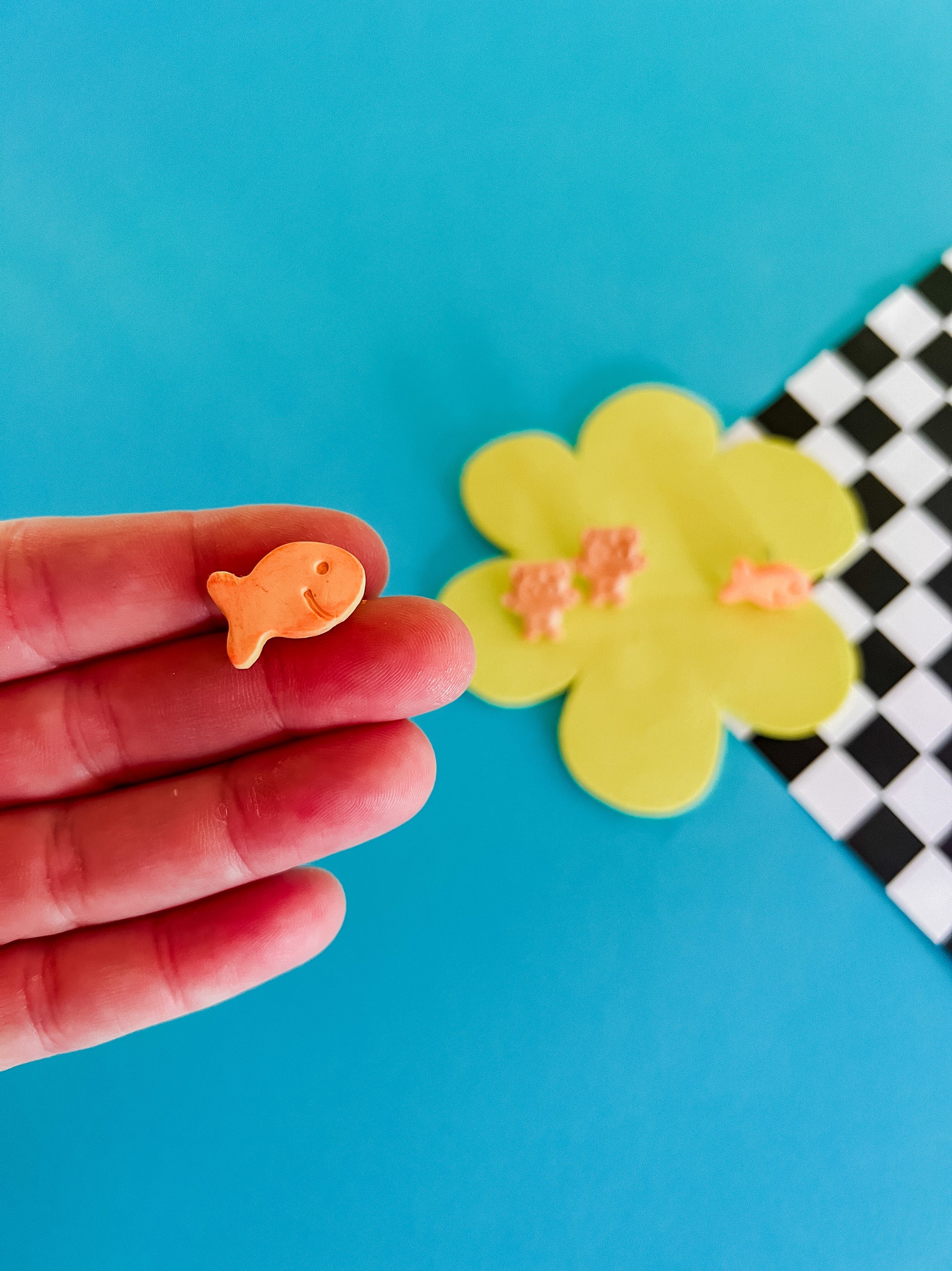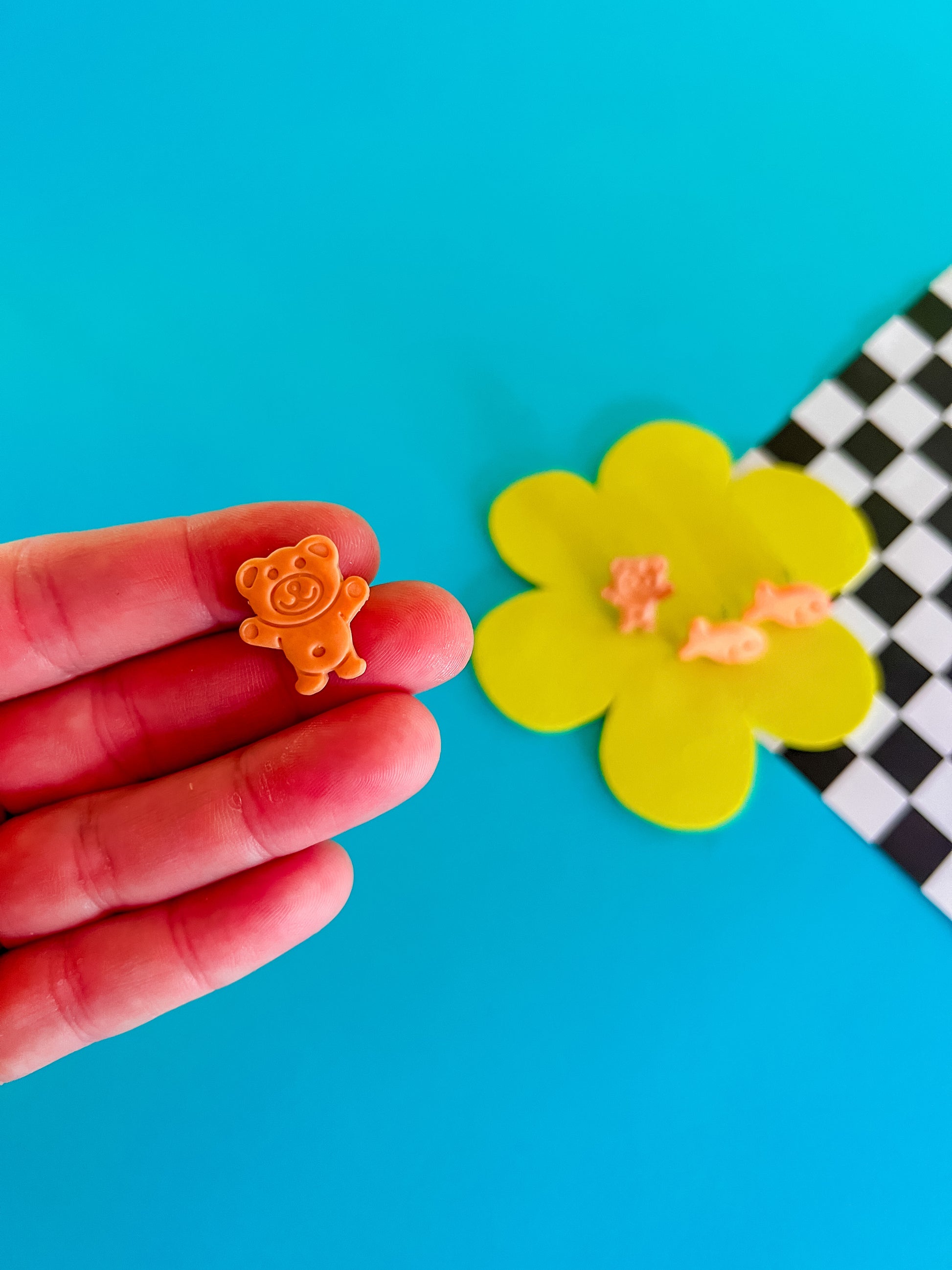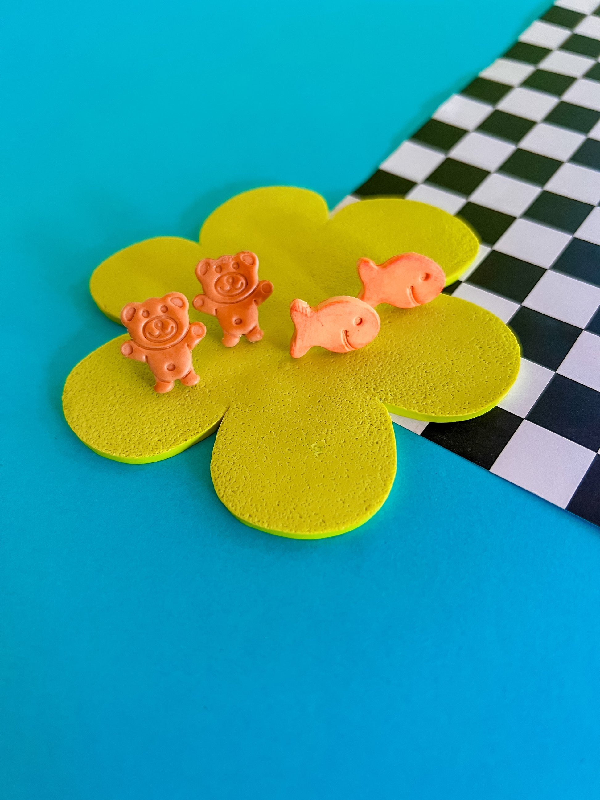 Cheddar Goldfish or Teddy Graham Earrings | Stainless Steel Stud | Polymer Clay | 1” length