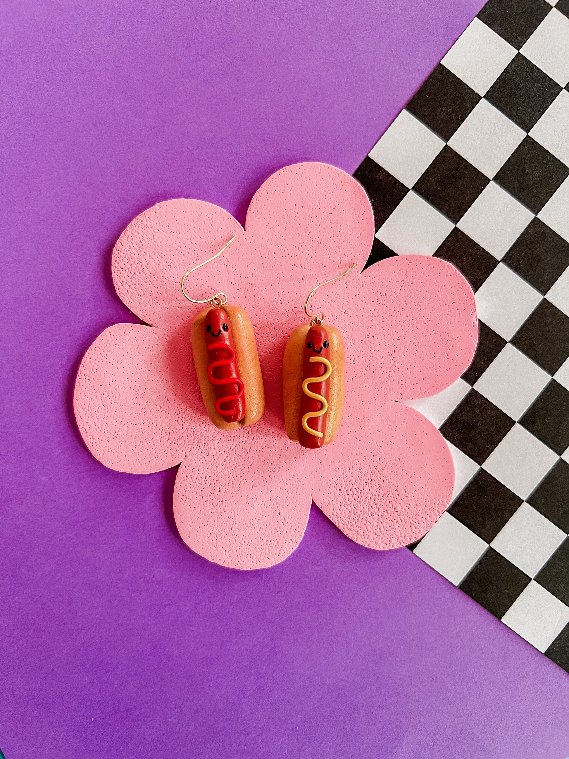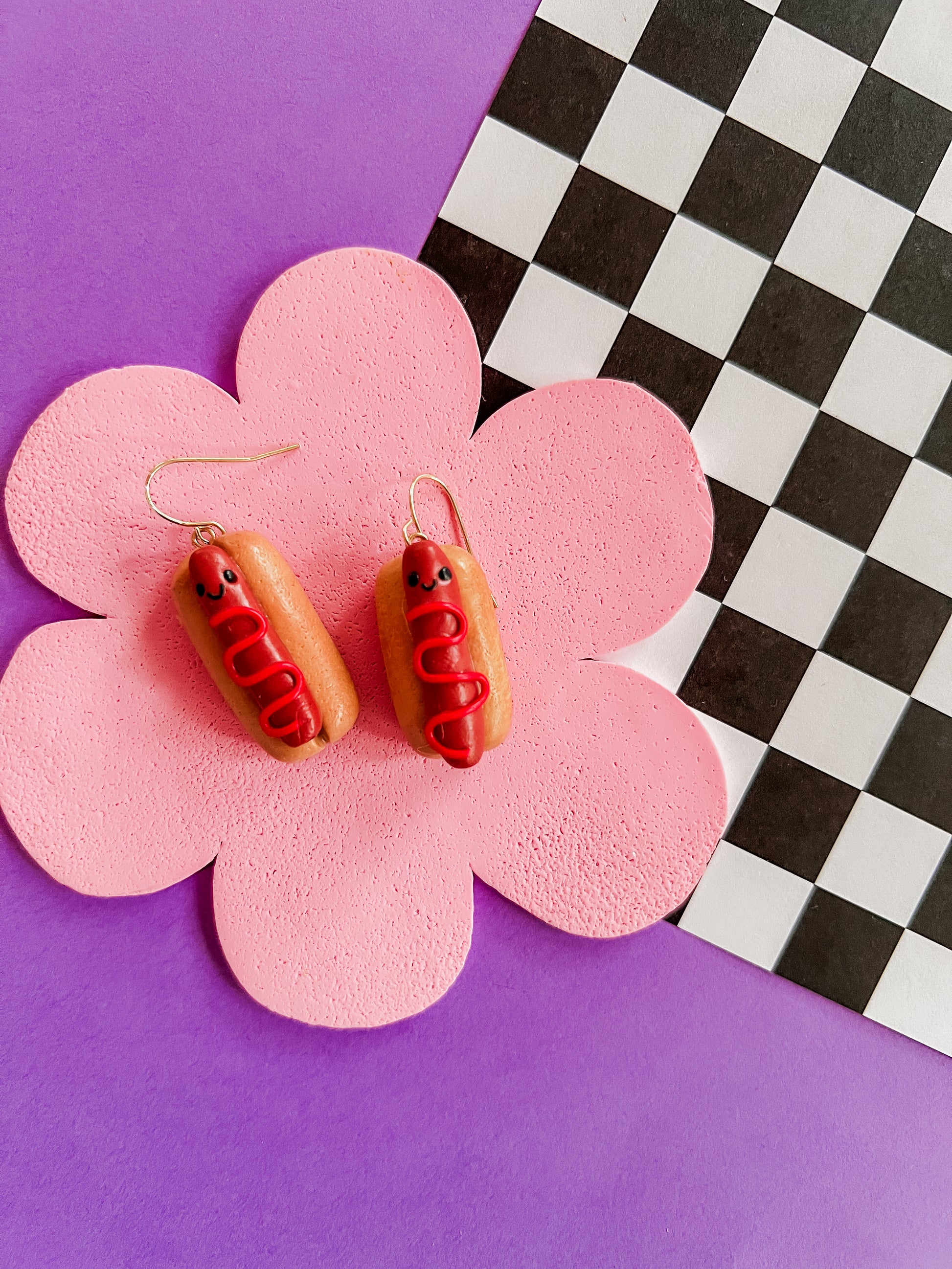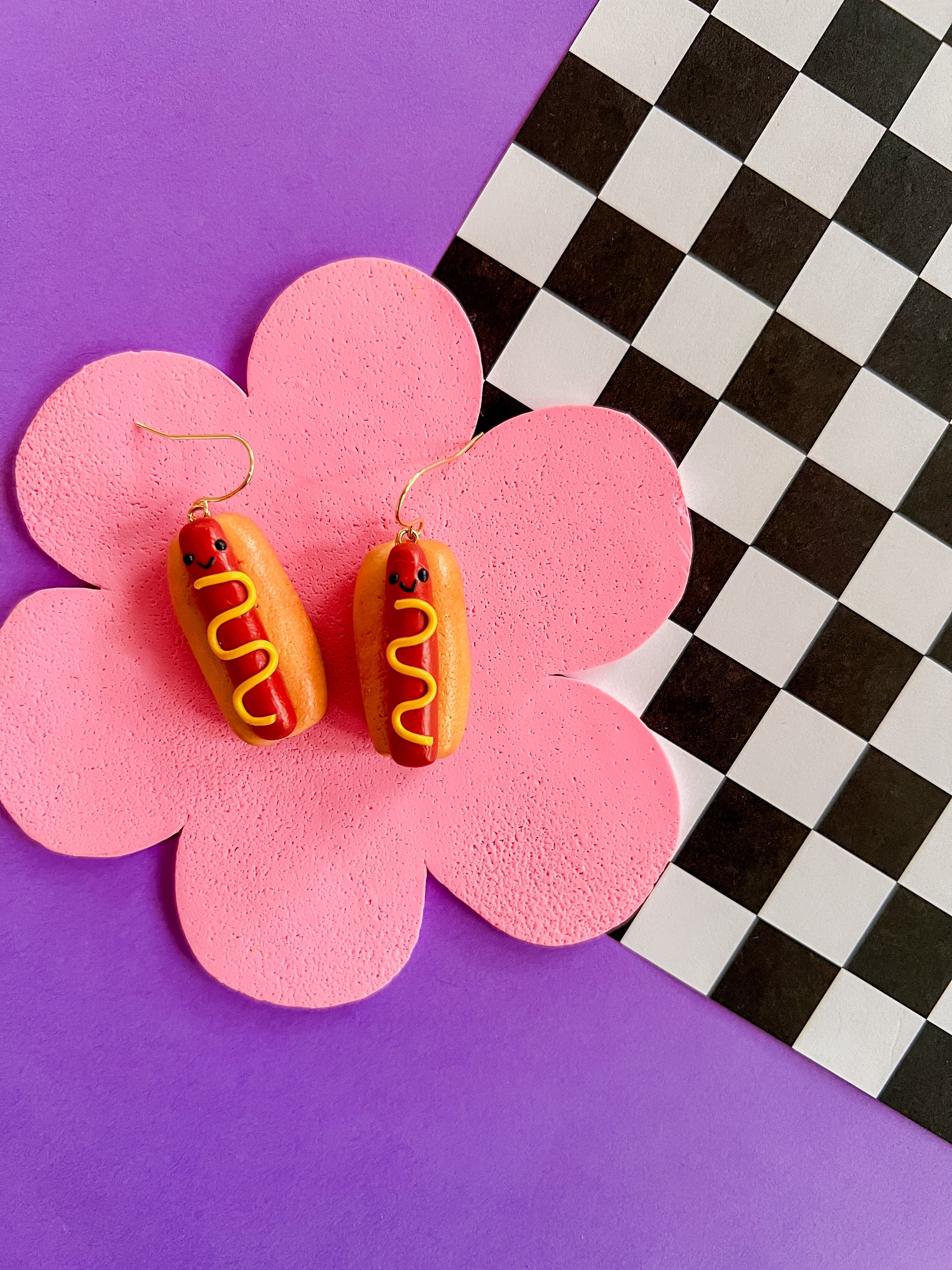 Hot Dog Earrings | Hypoallergenic, Gold Plated Ear Wire | 1” length