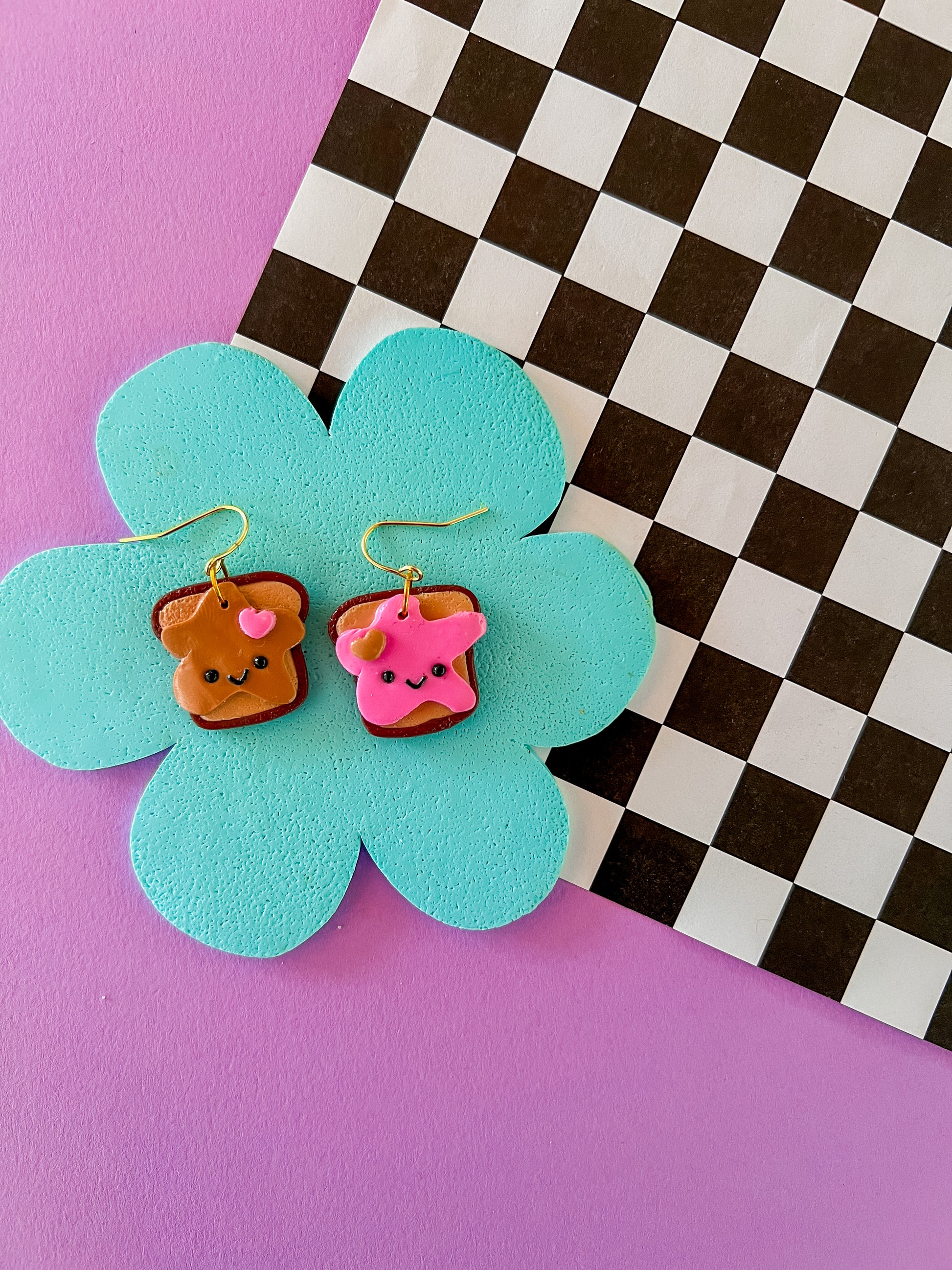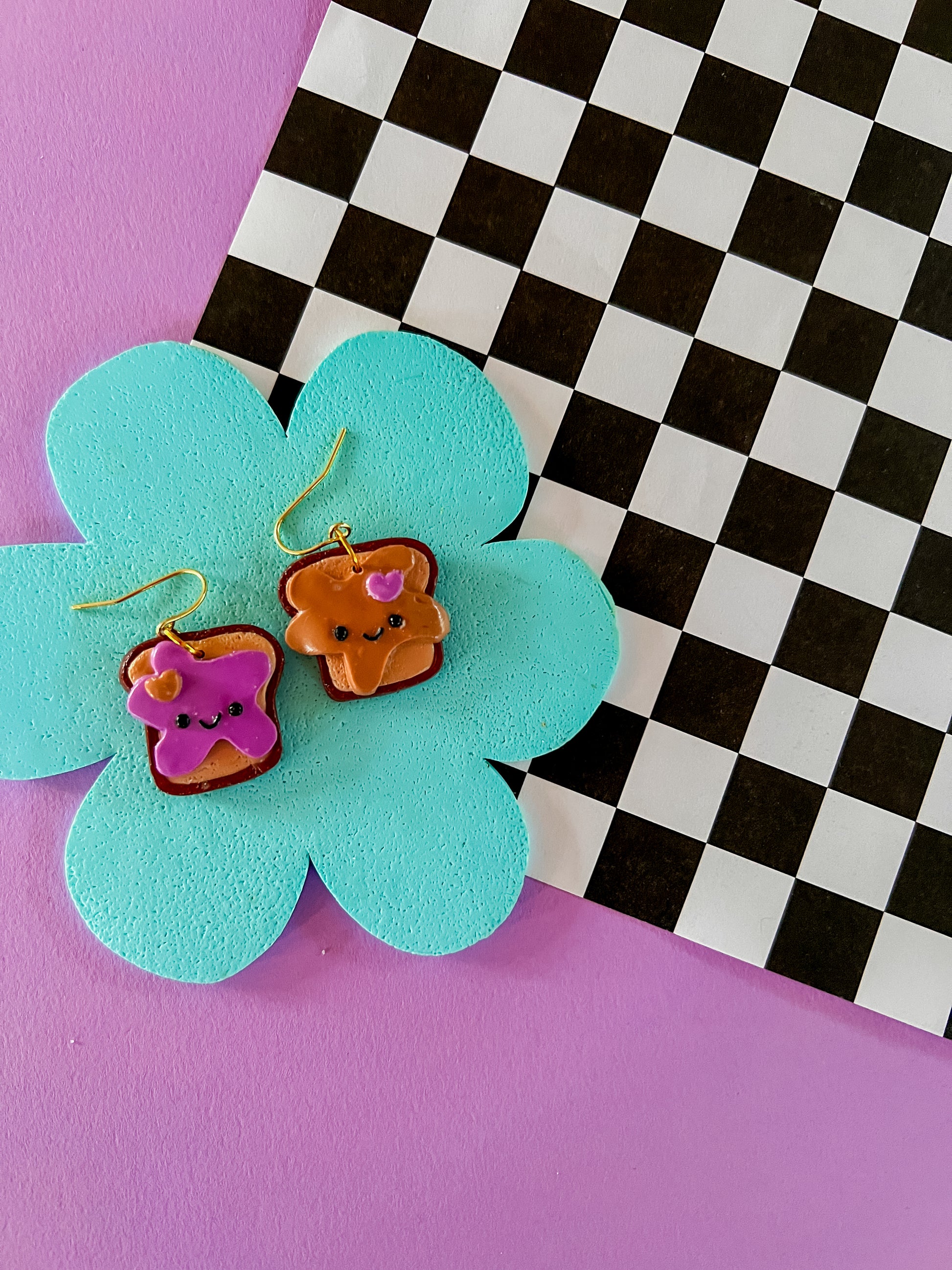Our earrings are handmade in Greenville. South Carolina. Each item will have small variations and possible imperfections. Clay earrings are made start to finish from a block of clay. Each piece is unique. Each item is lovingly rolled out, cut, baked, sanded and assembled by hand from polymer clay.
