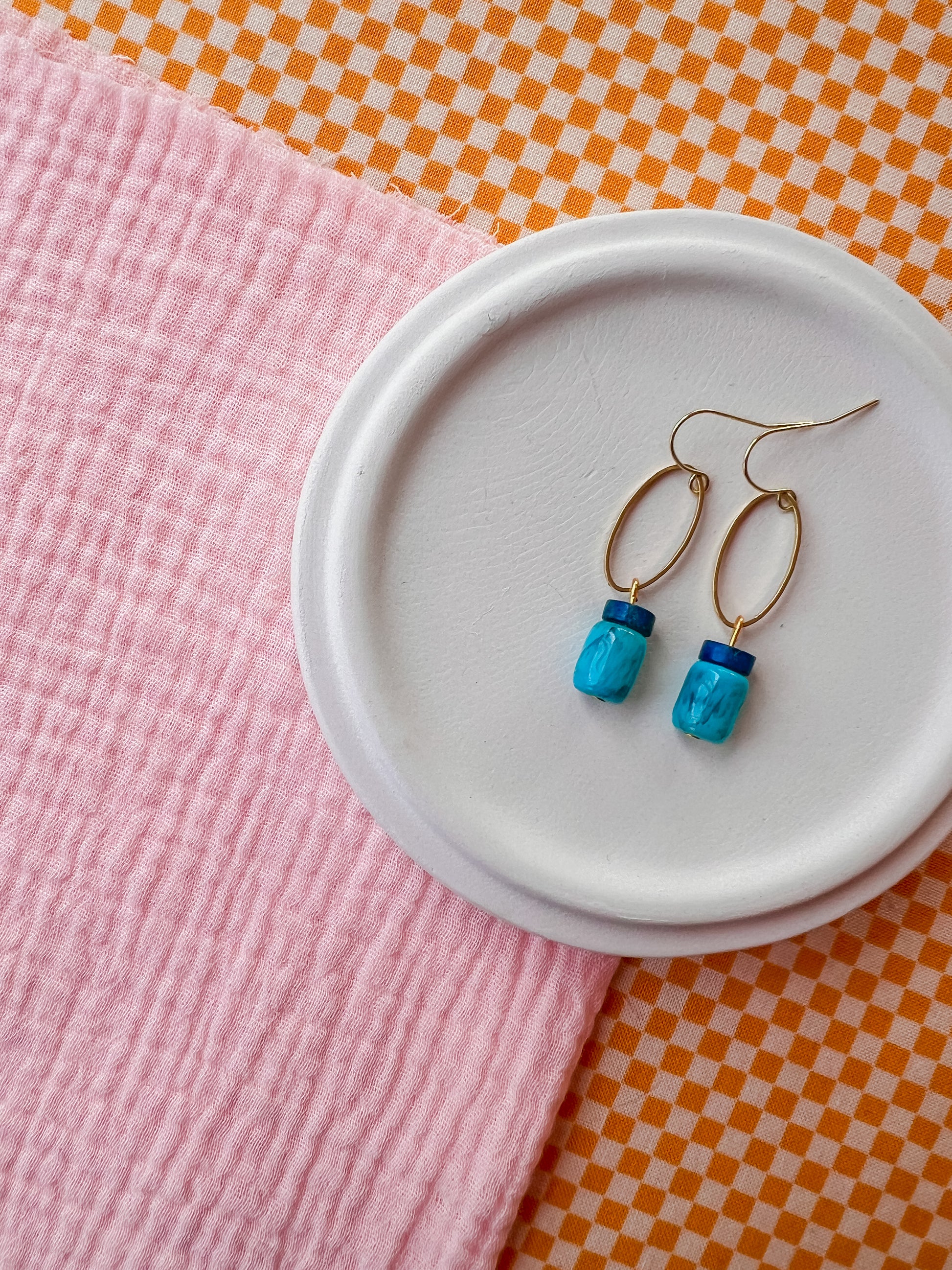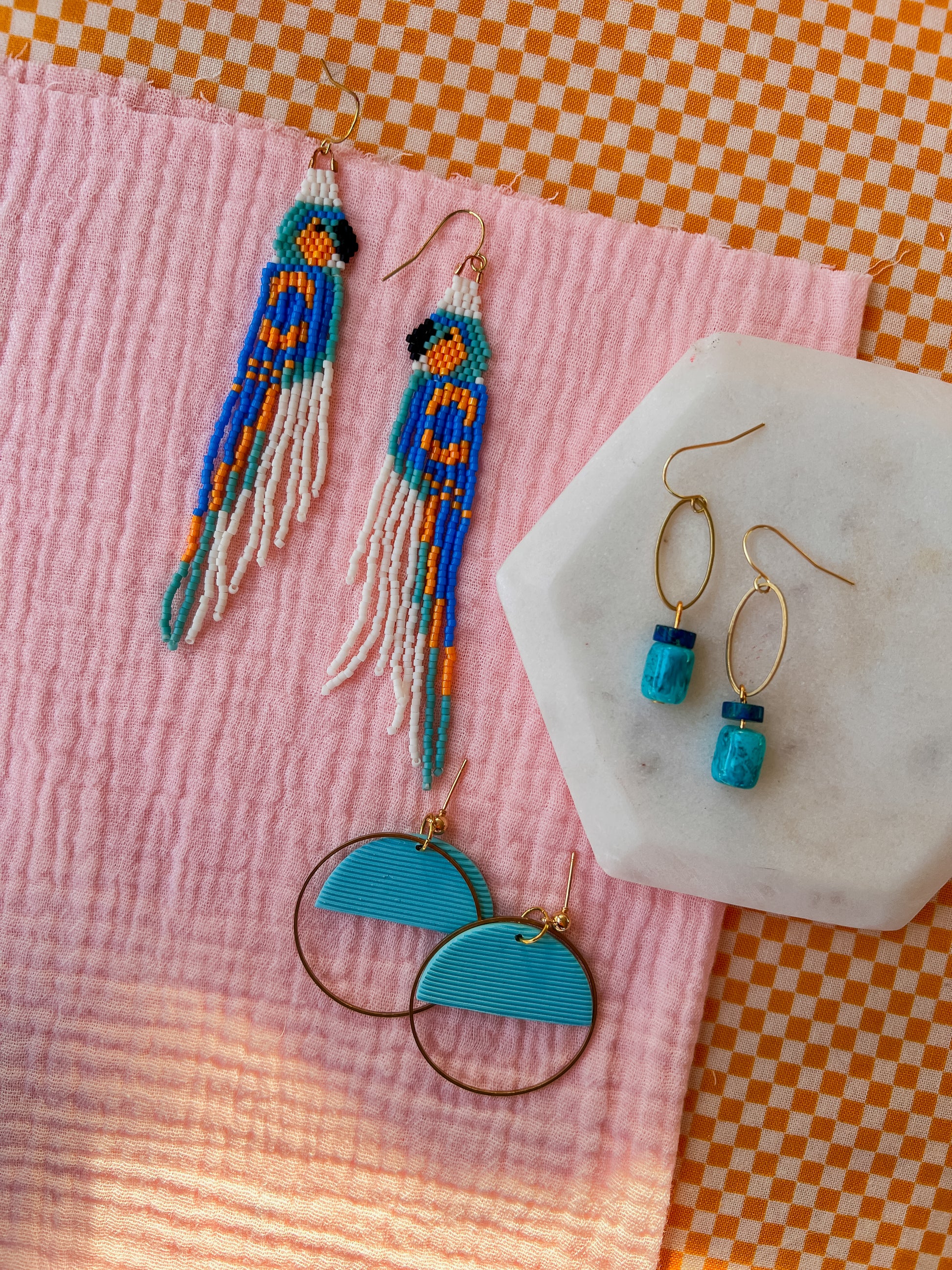 Our earrings are handmade in Greenville. South Carolina. Each item will have small variations and possible imperfections. These beads are imperfectly handmade so each pair of earrings is unique and will have slight variations.