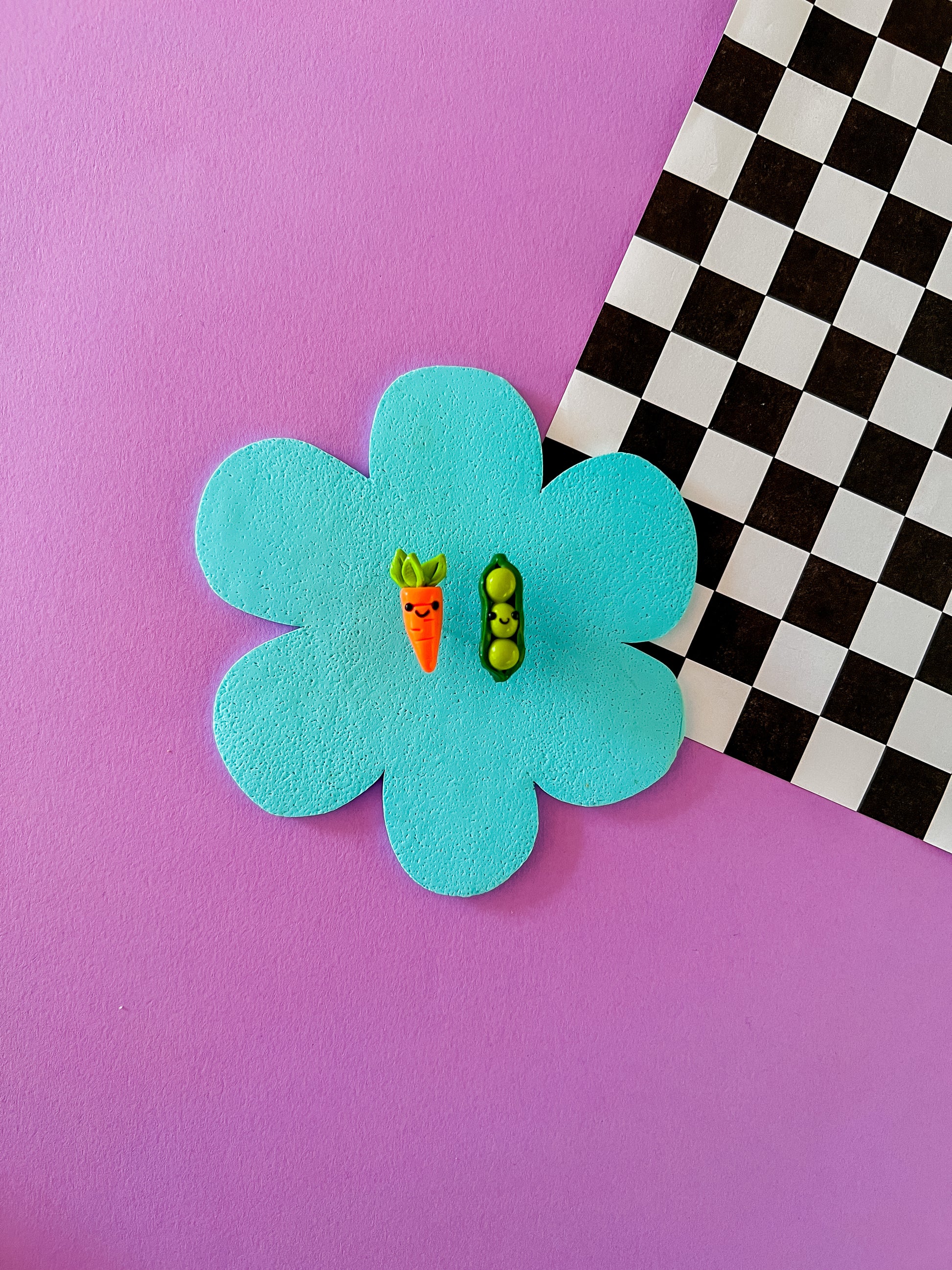 Our earrings are handmade in Greenville. South Carolina. Each item will have small variations and possible imperfections. Clay earrings are made start to finish from a block of clay. Each piece is unique. Each item is lovingly rolled out, cut, baked, sanded and assembled by hand from polymer clay.