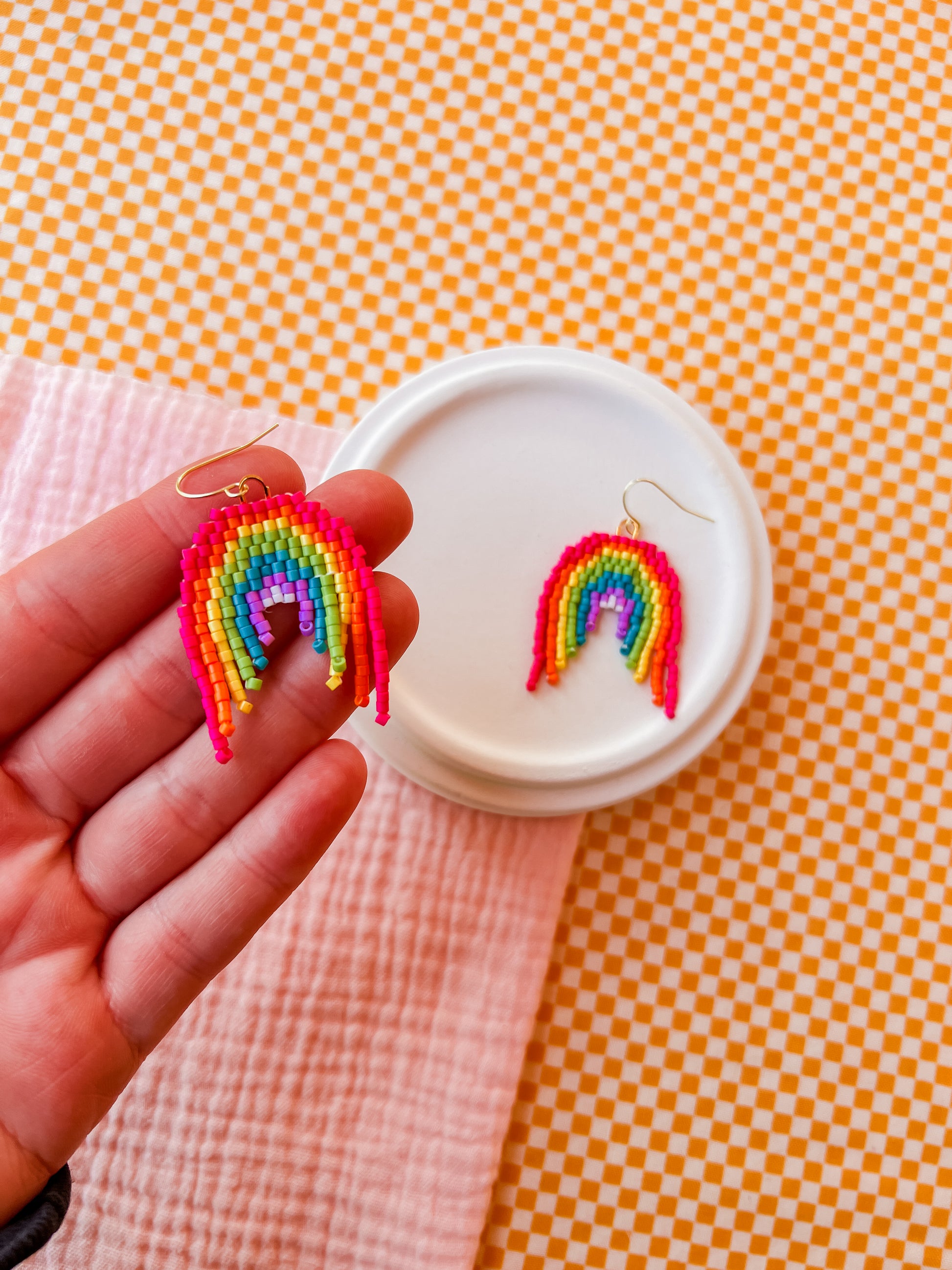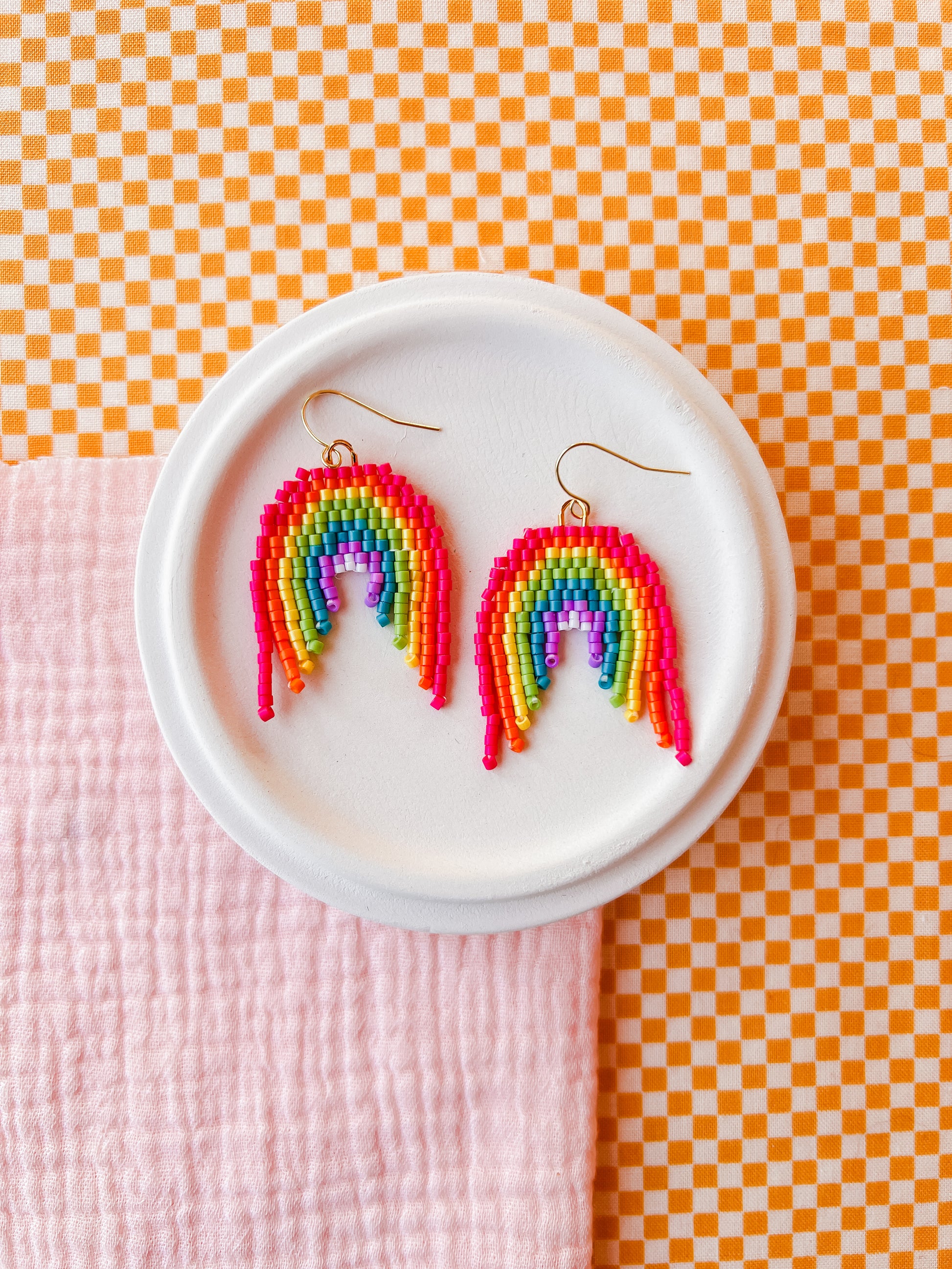 Our earrings are hand woven, hand beaded and intricately designed. Each item will have small variations and possible imperfections. These earrings are woven with small glass seed beads and strong nylon thread to last a lifetime.