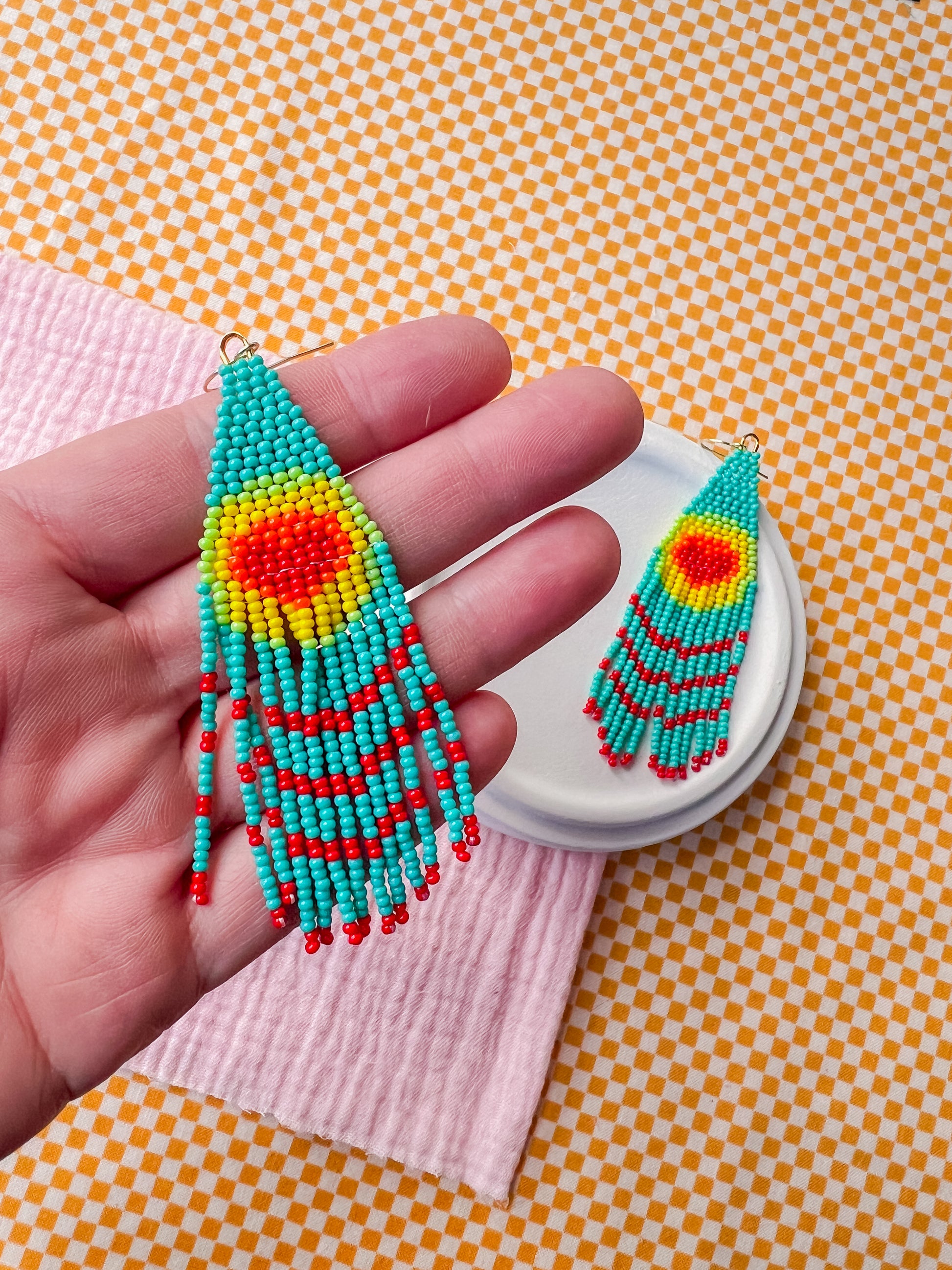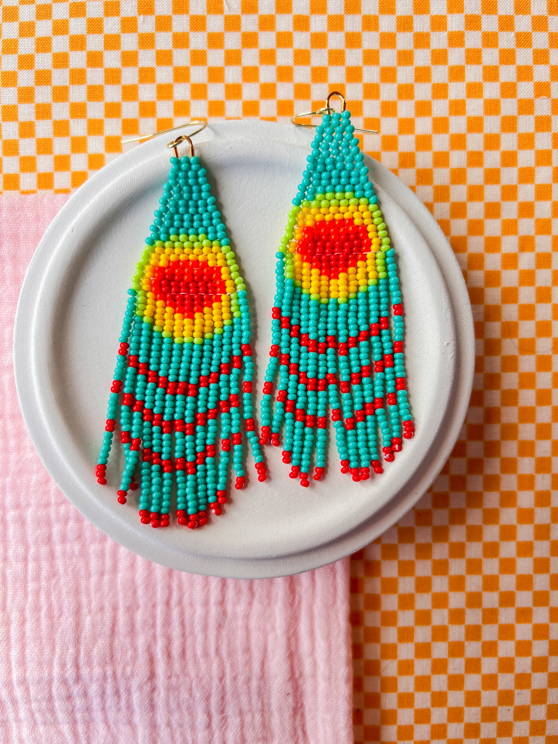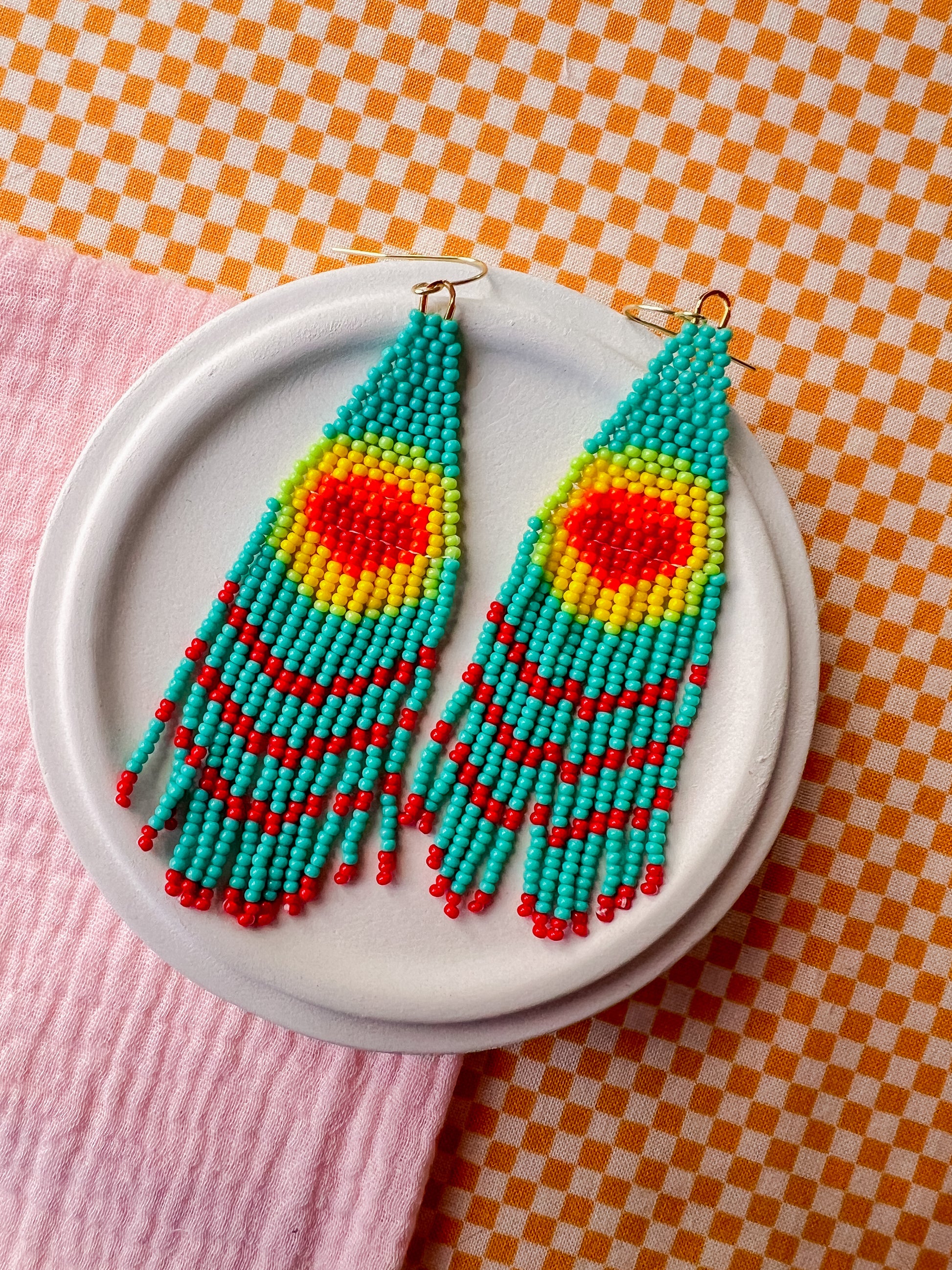 Our earrings are hand woven, hand beaded and intricately designed. Each item will have small variations and possible imperfections. These earrings are woven with small glass seed beads and strong nylon thread to last a lifetime.