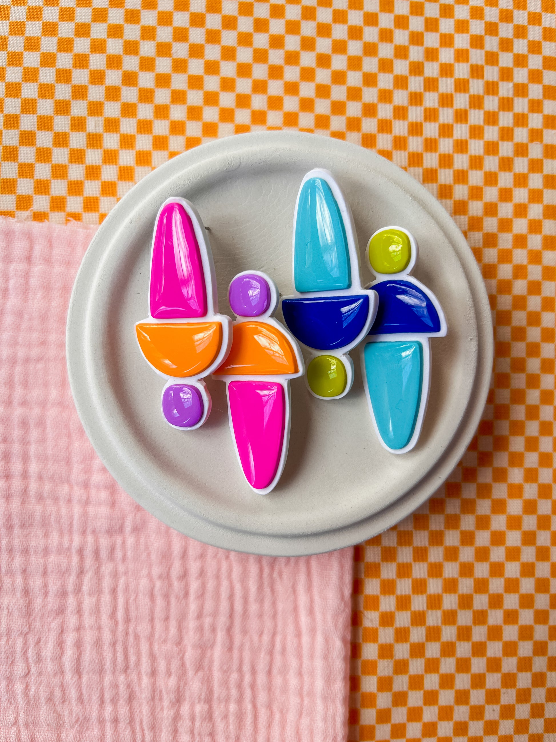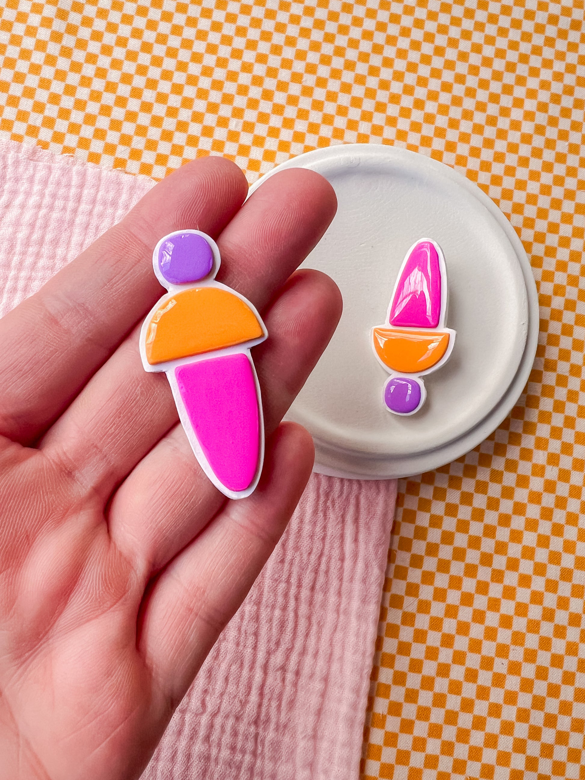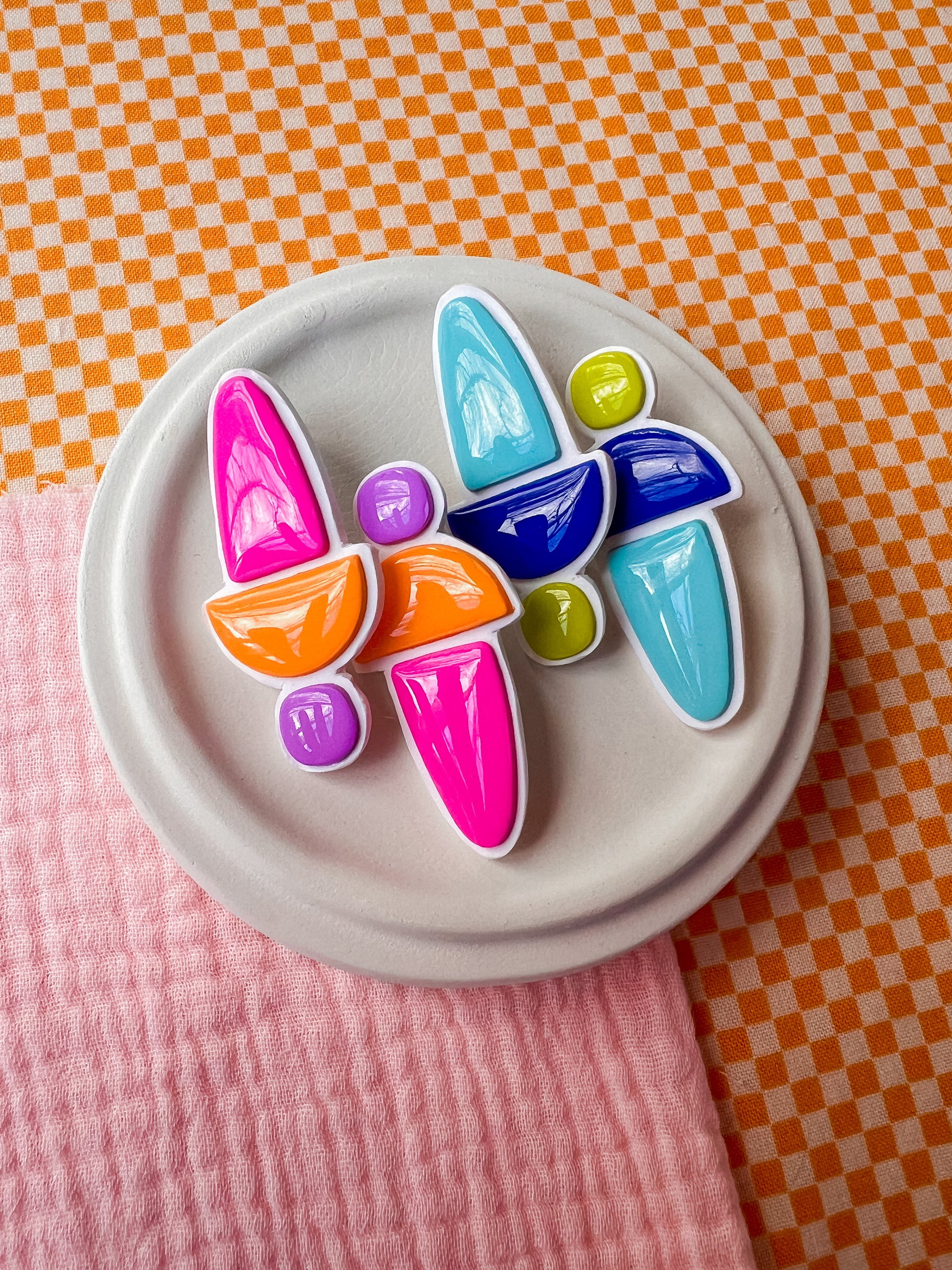 Marty Earrings | Stainless Steel Post| 2” length | Glazed Polymer Clay