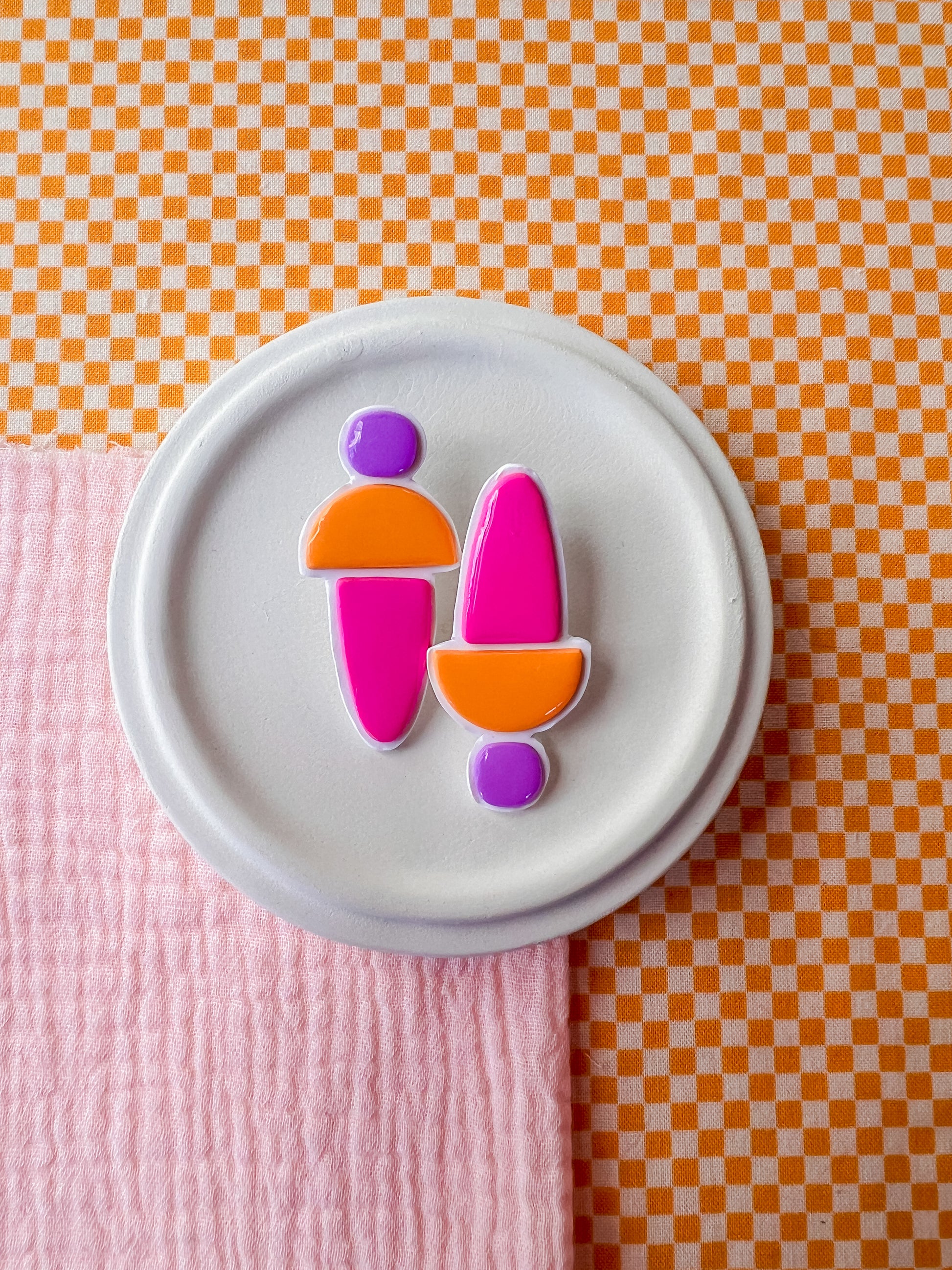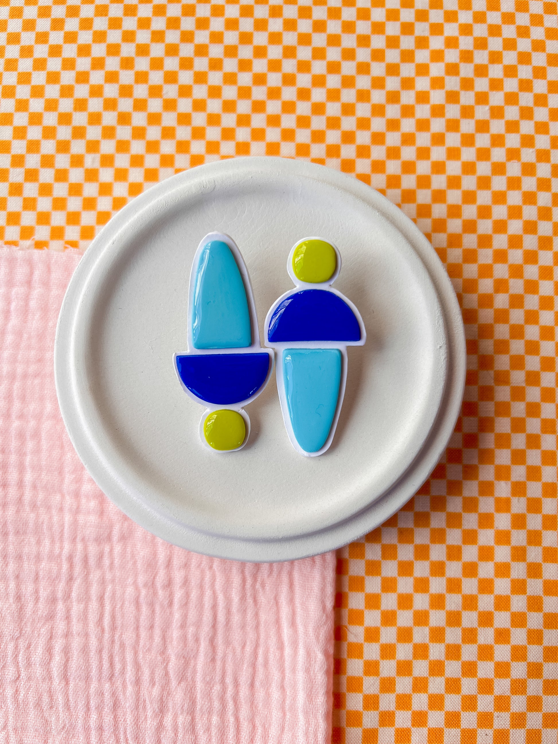 Our earrings are handmade in Greenville. South Carolina. Each item will have small variations and possible imperfections. Clay earrings are made start to finish from a block of clay. Each piece is unique. Each item is lovingly rolled out, cut, baked, sanded and assembled by hand from polymer clay.