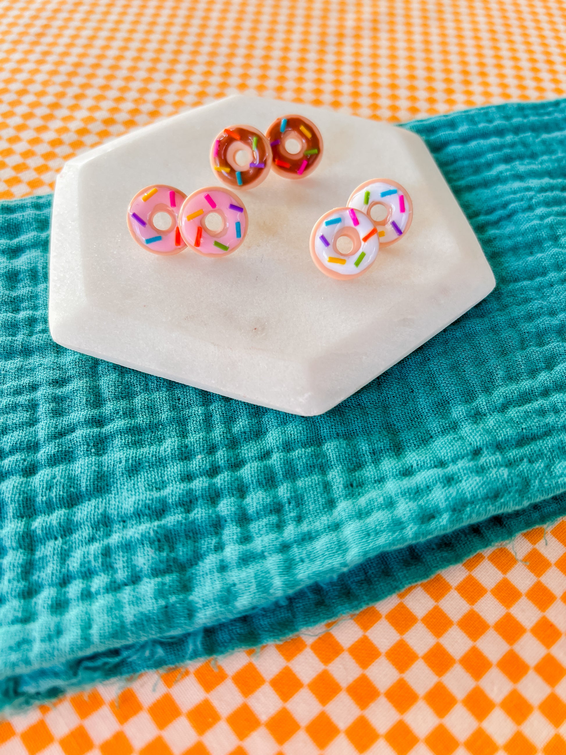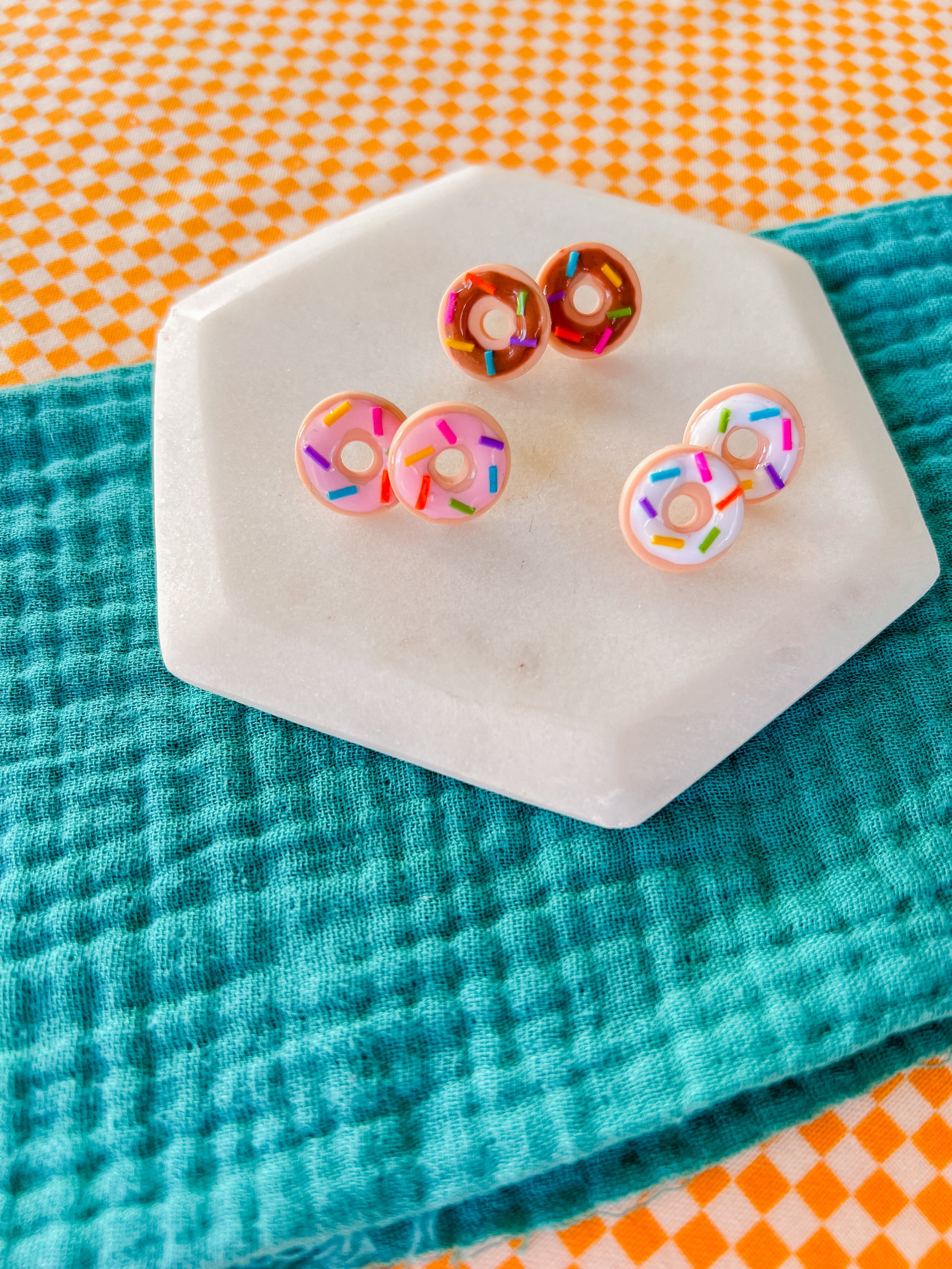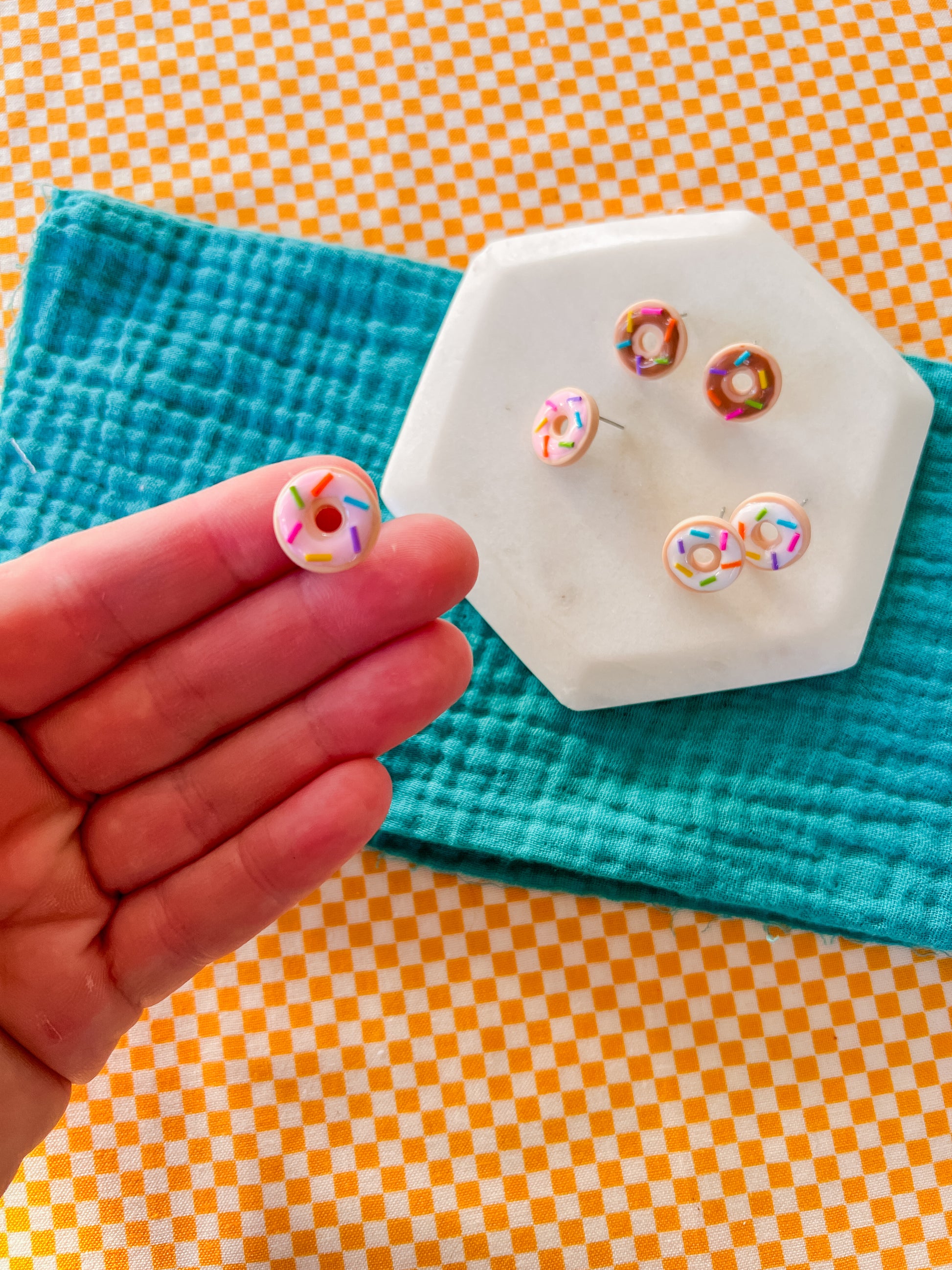 Mini Dot Donut Earrings | Stainless Steel Post | Polymer Clay | 1” length