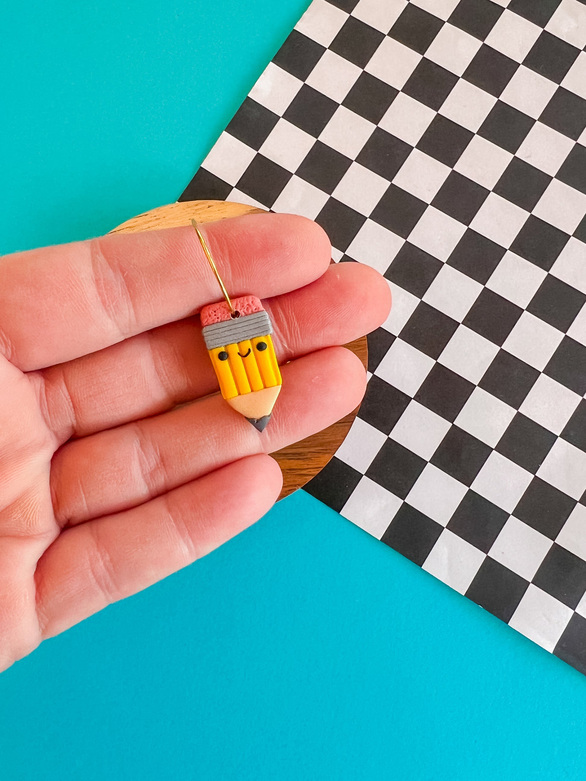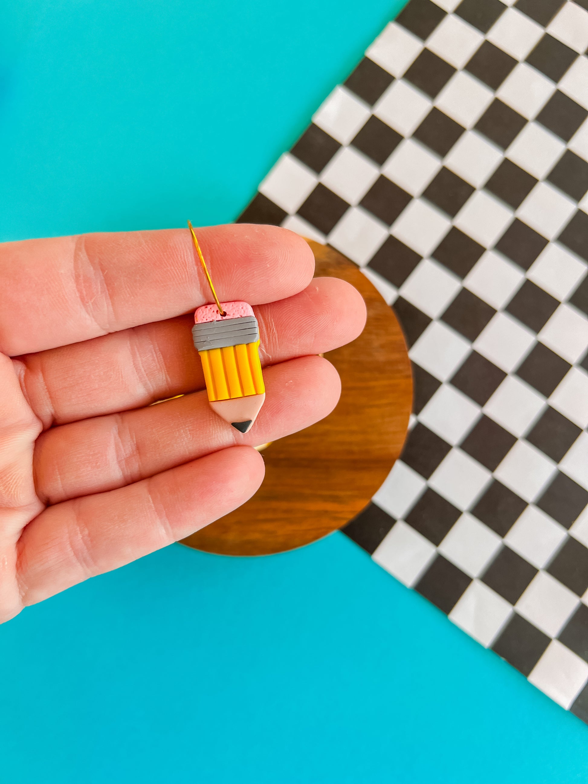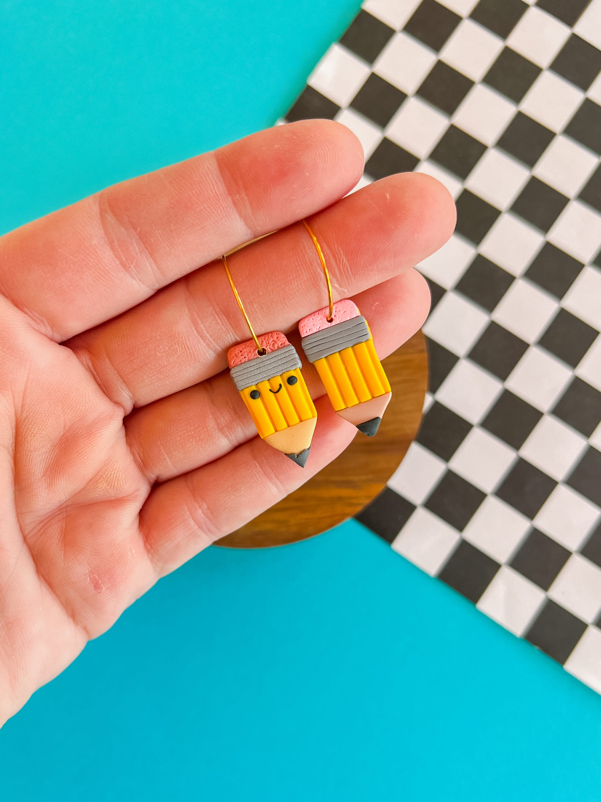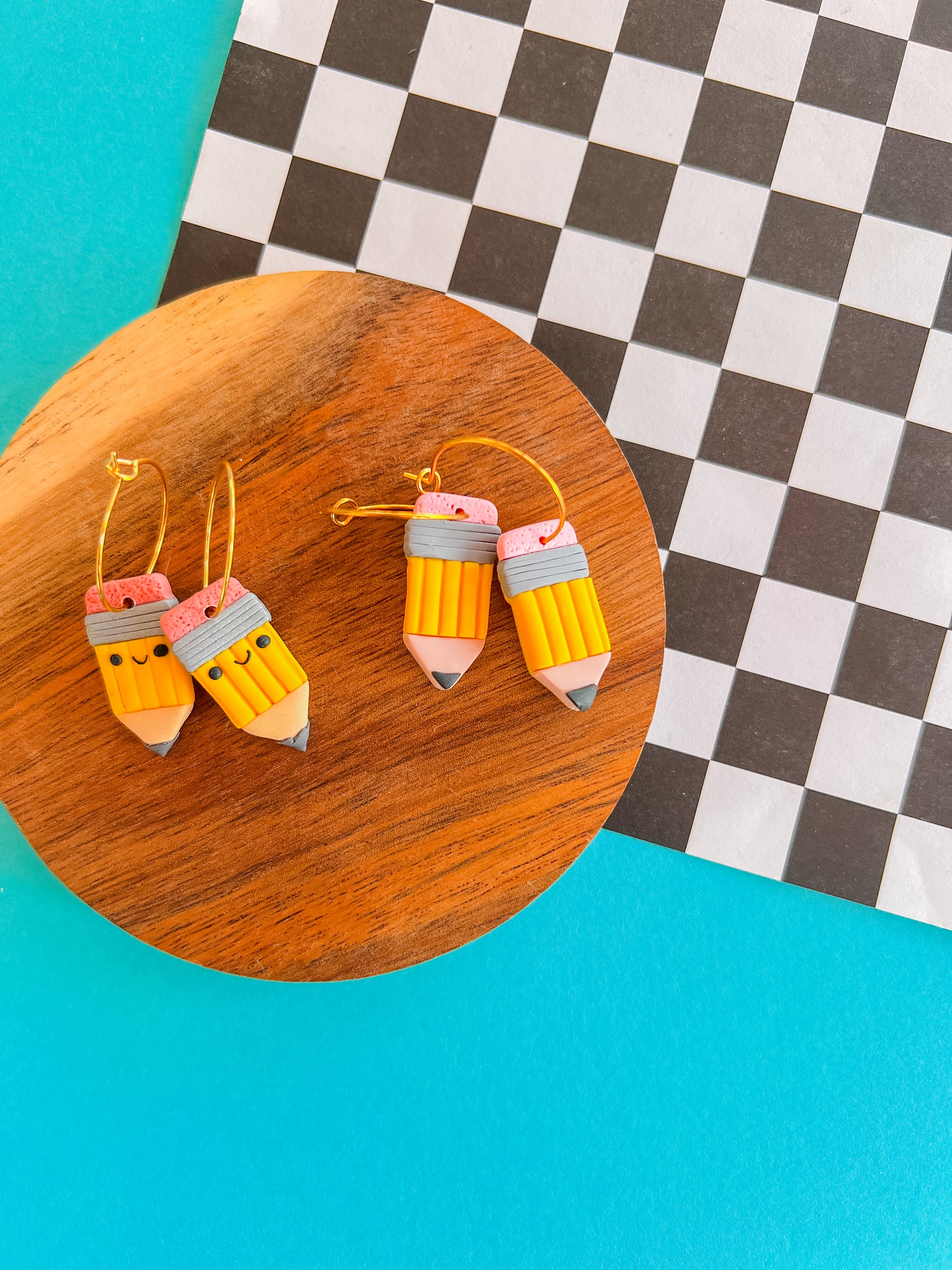 Parker Pencil Earrings | Gold or Silver Plated Hoop | Polymer Clay | 1.5” length
