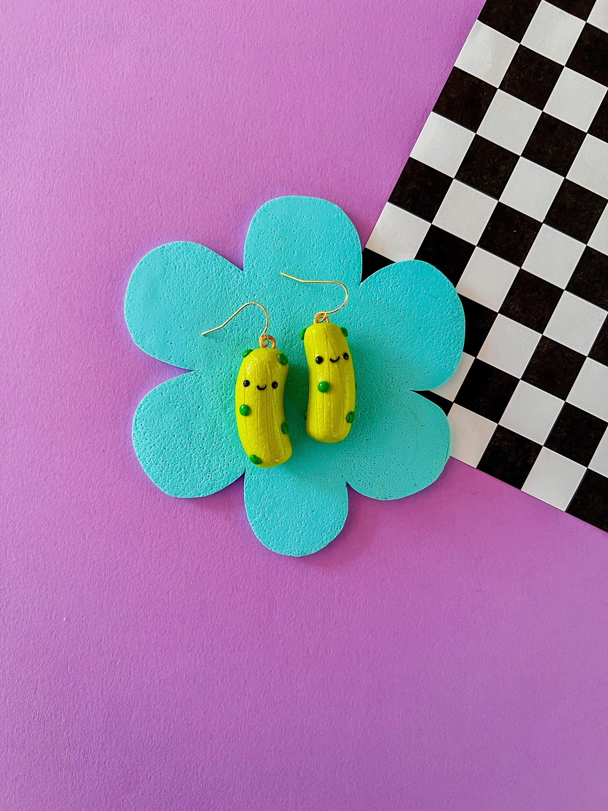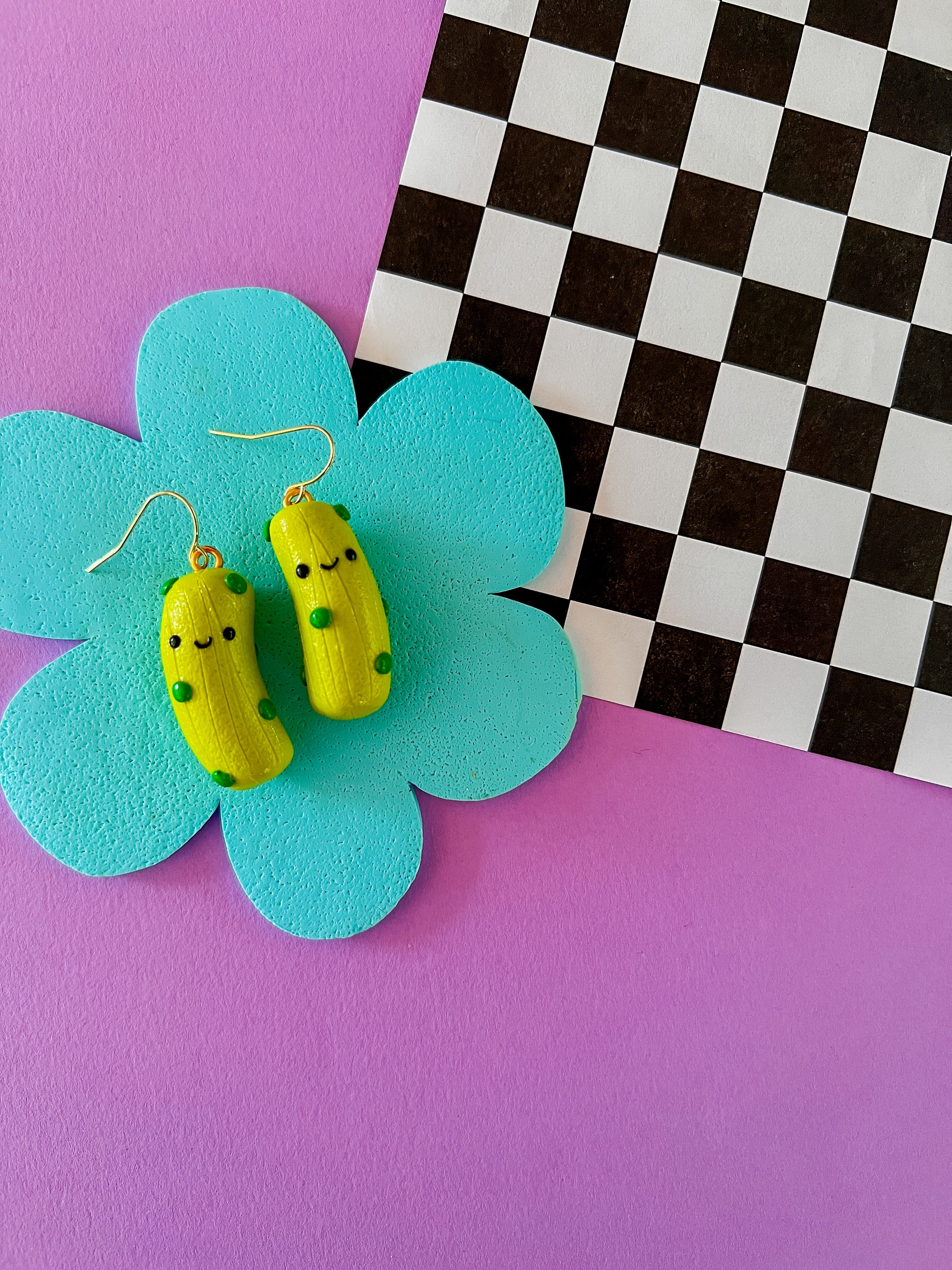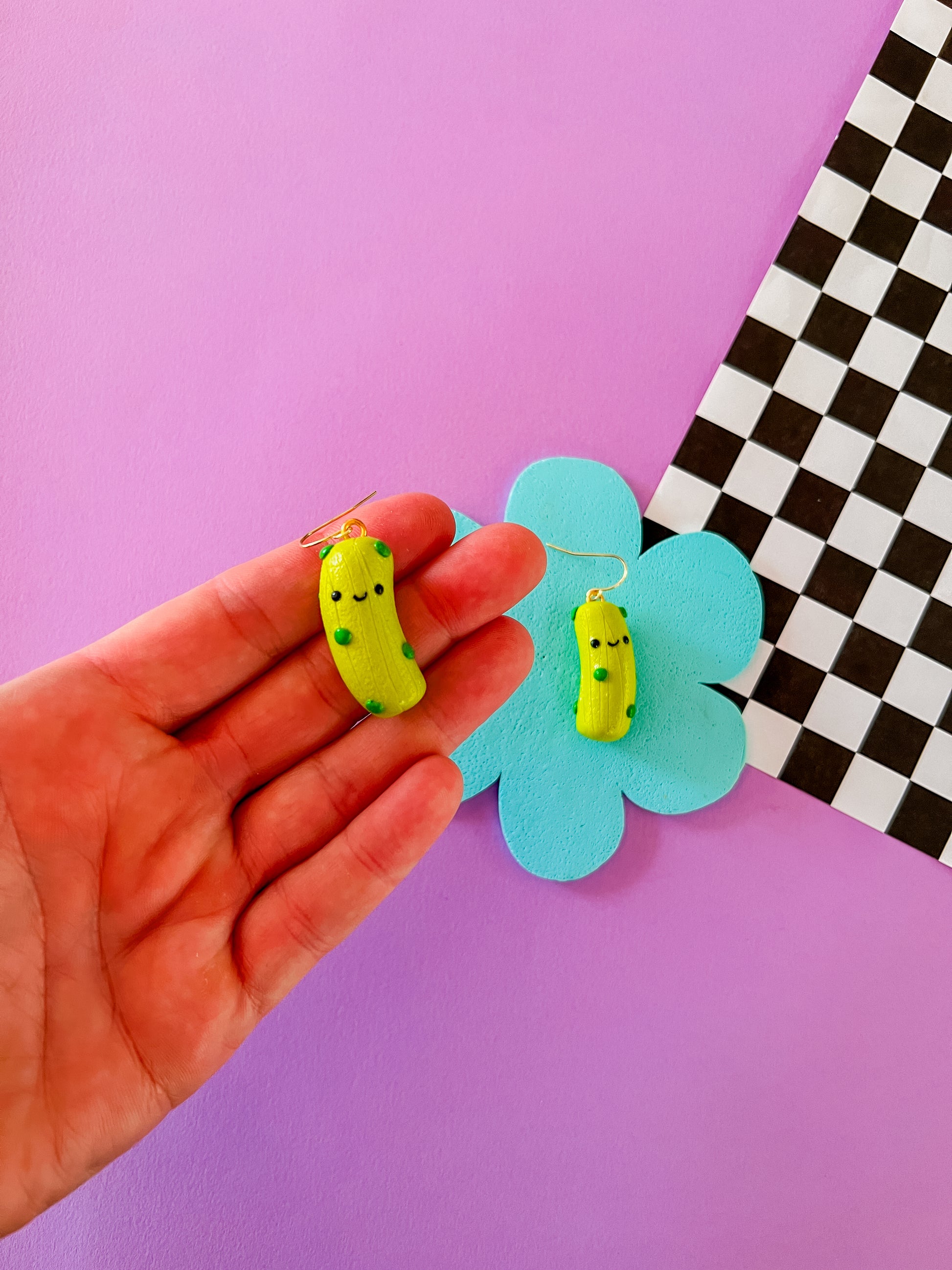 Patrick Pickle Earrings | Silver Plated, Sterling Silver or Clip On option | Polymer Clay | 1” length